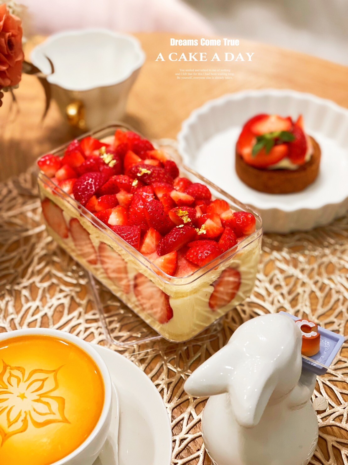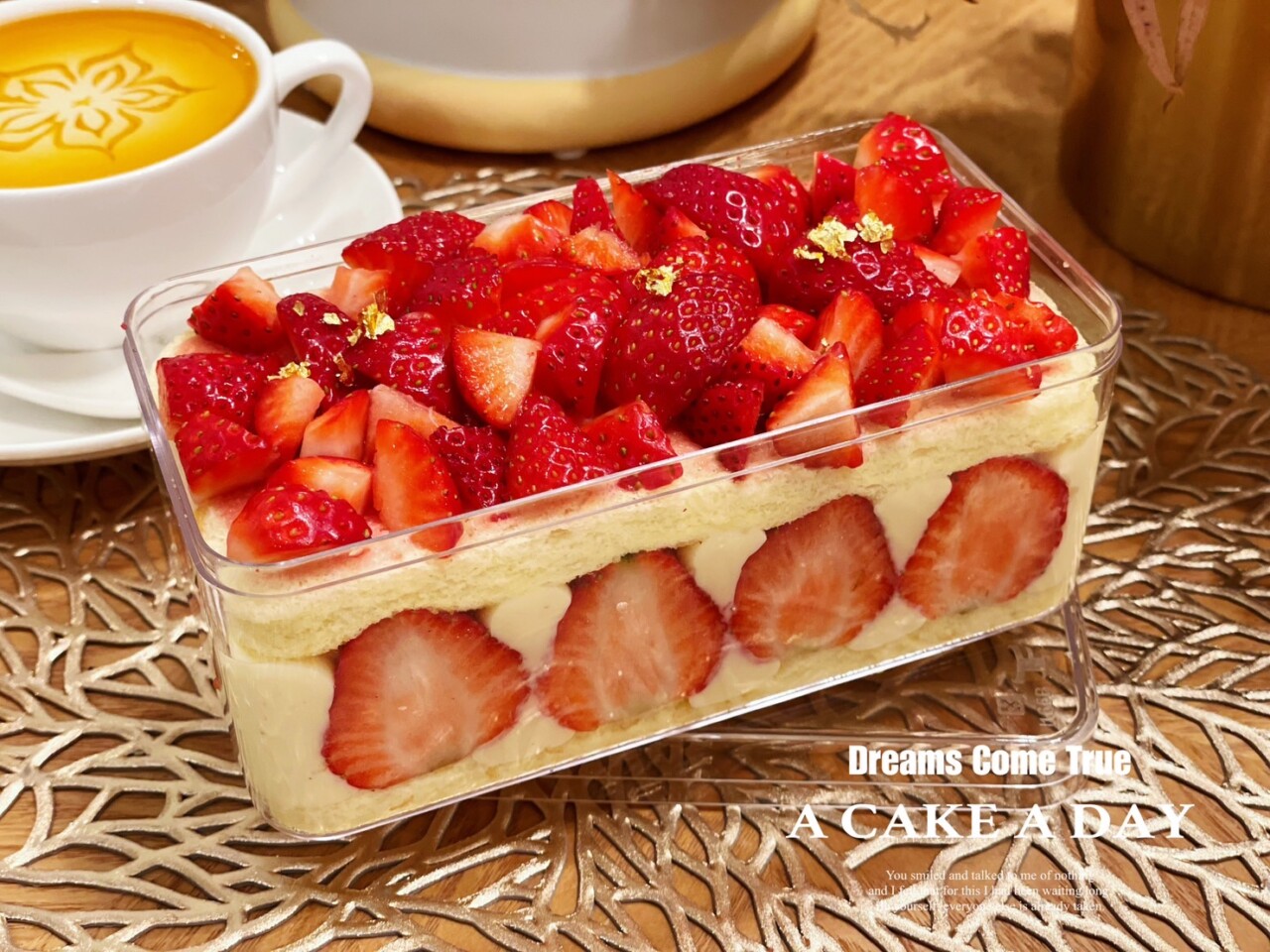 🍓草莓珠寶盒💎-最適合接單的盒子蛋糕~用戚風蛋糕擦上草莓泥,加上以卡士達醬延伸的香草外交官奶油、滿滿的草莓以及法式香緹奶油~一口接著一口停都停不下來!