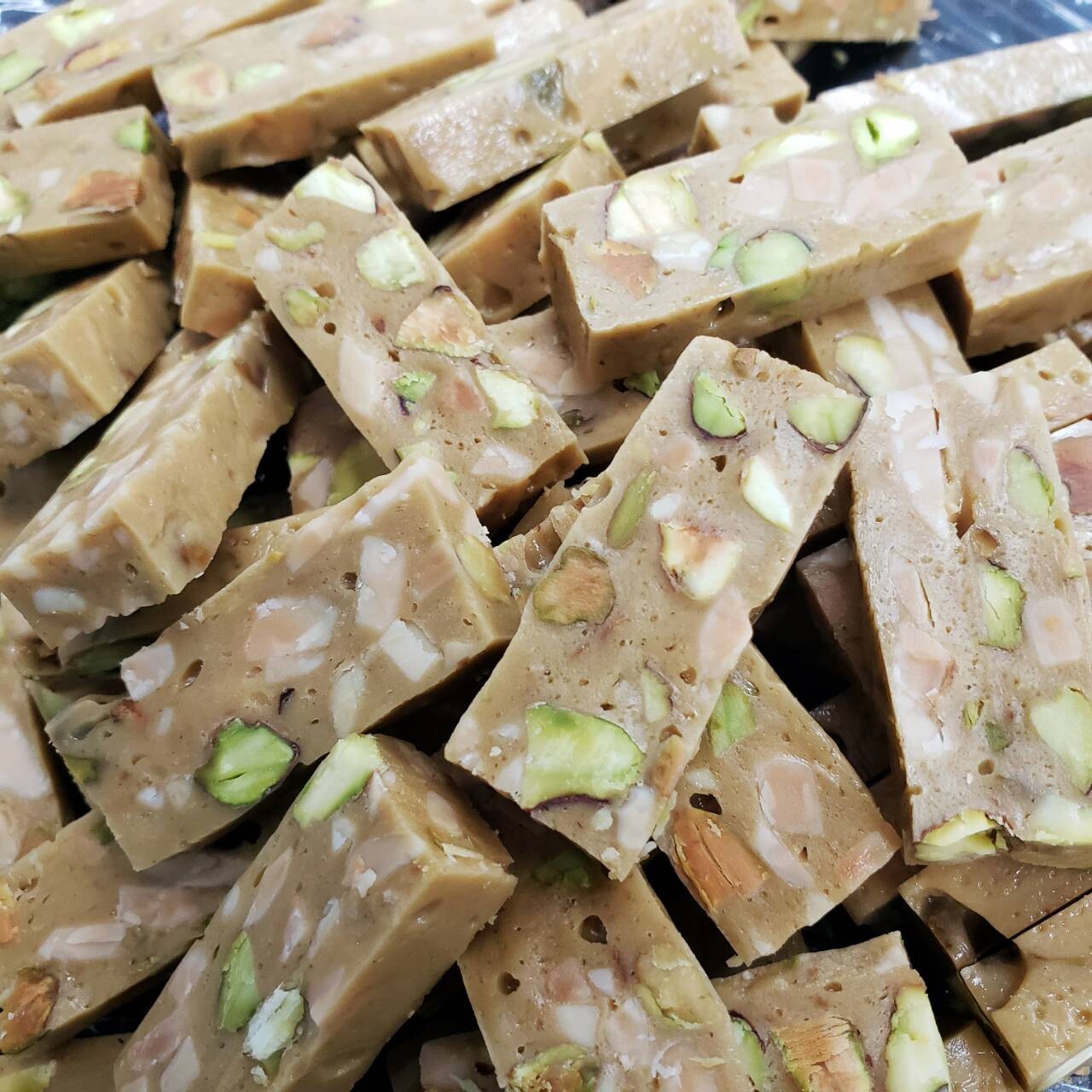 近年最流行的開心果風味~~太妃酥糖加入濃郁開心果醬與脆脆開心果仁,焦糖與開心果揉合出濃香好滋味。