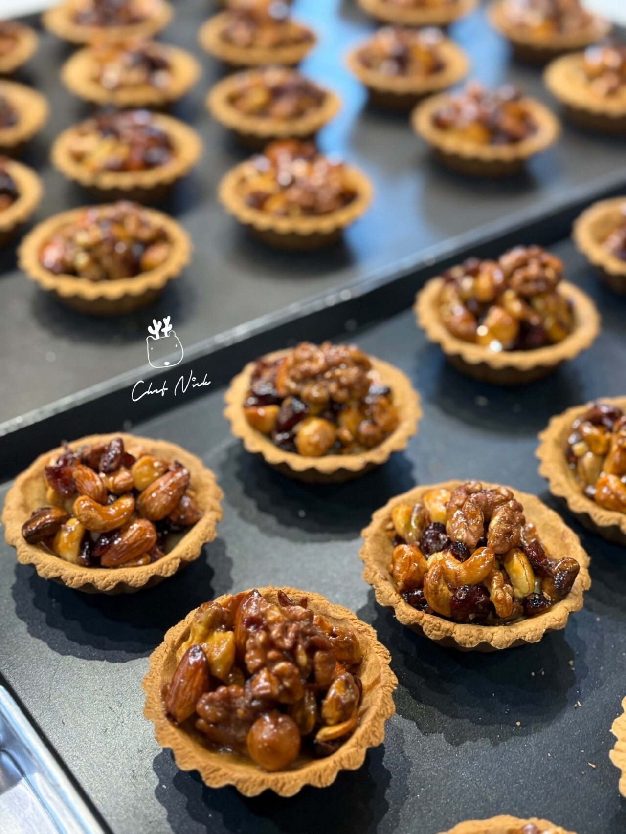 酥香塔皮裝滿焦糖拌炒堅果,還能自由加入蔓越莓、葡萄乾,酸甜層次超迷人~