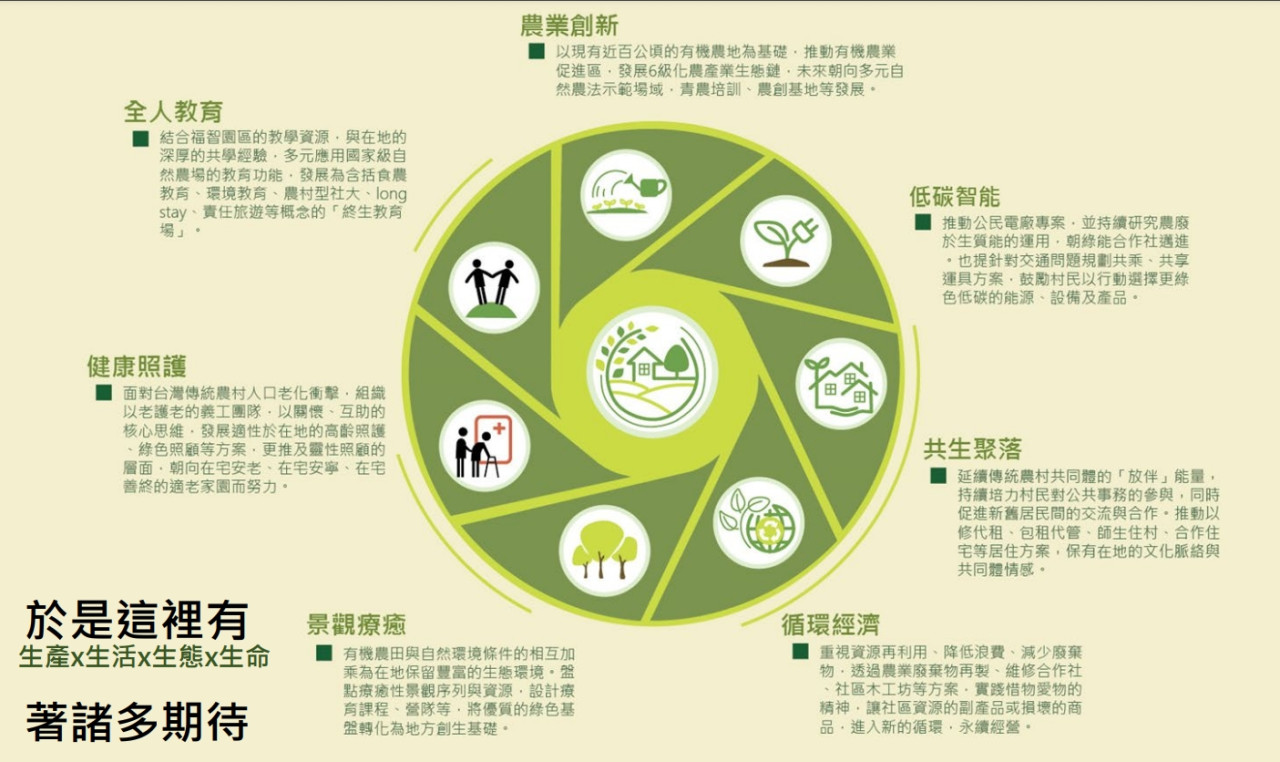 古坑國際心靈生態村是一場正在園區周邊的社區轉型實驗,以「幸福」為主要目標,追求以「自我覺察」、「關懷互助」及「慈悲利他」的日常實踐來自我培力同時培力培福。這過程不但有「療癒」效果,同時也培養能夠安頓自己身心、與人良善溝通,又能認清自己與所屬系統關係的新能力。這些能力是一種韌性,讓自己更能回應現代社會因為壓力、競爭、人際疏離、日常生活缺乏互助支援系統等所造成的種種問題,我們正積極的組織各種社群來解決共同問題,邀請您一起來認識理解、放伴前行。