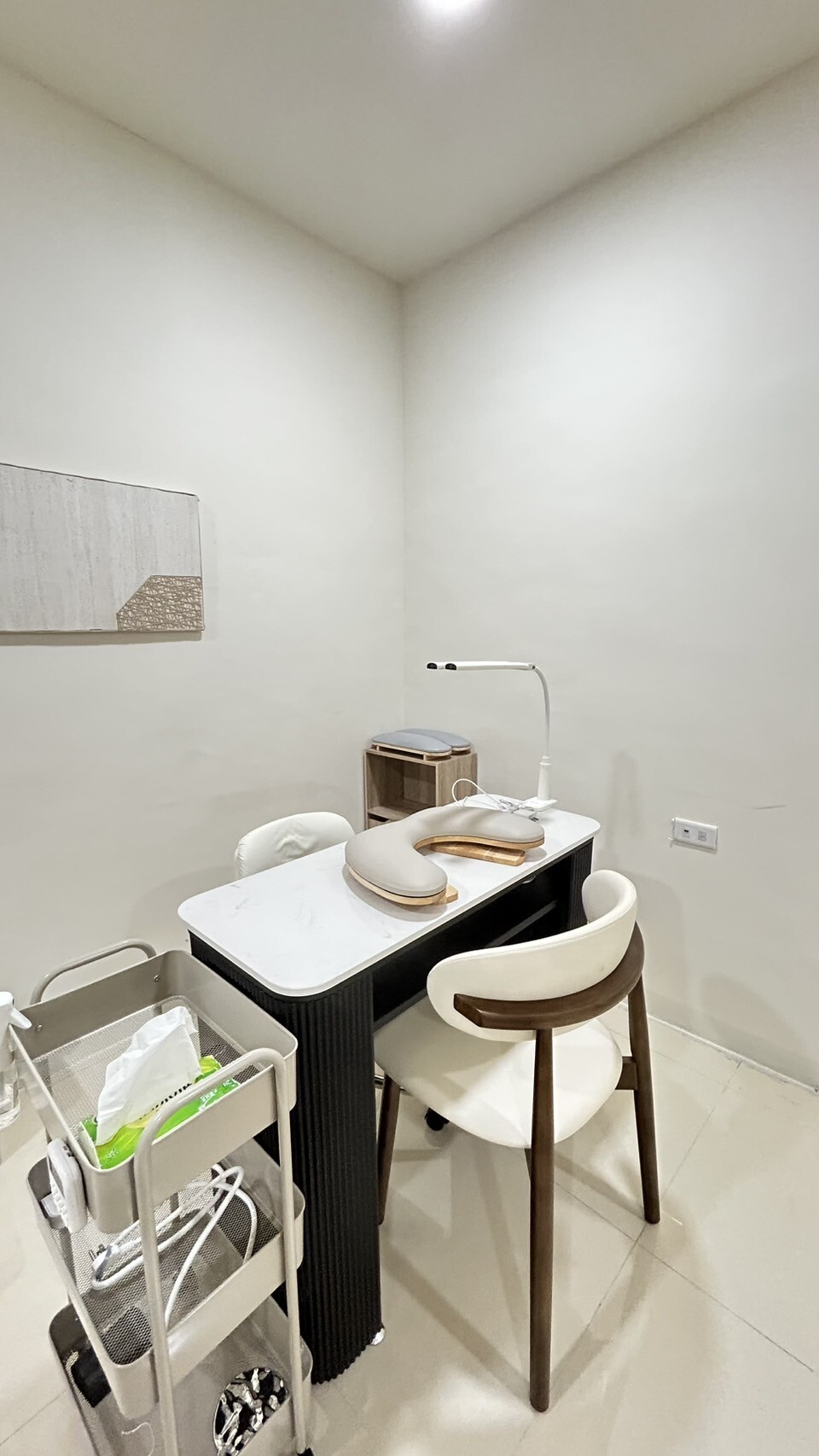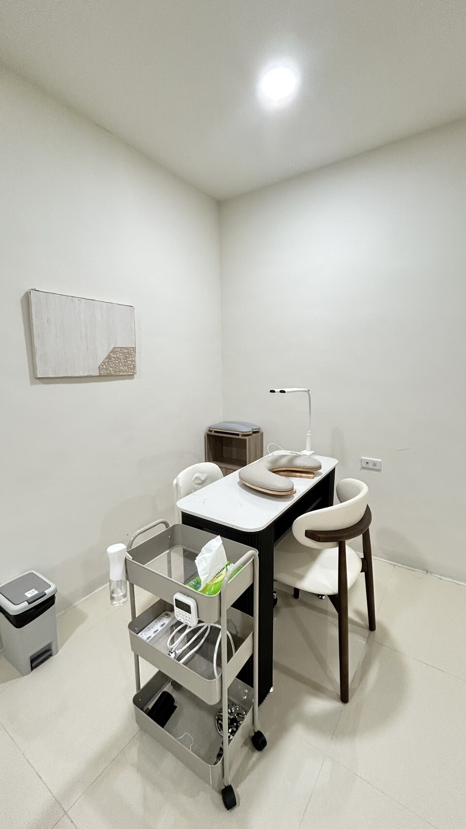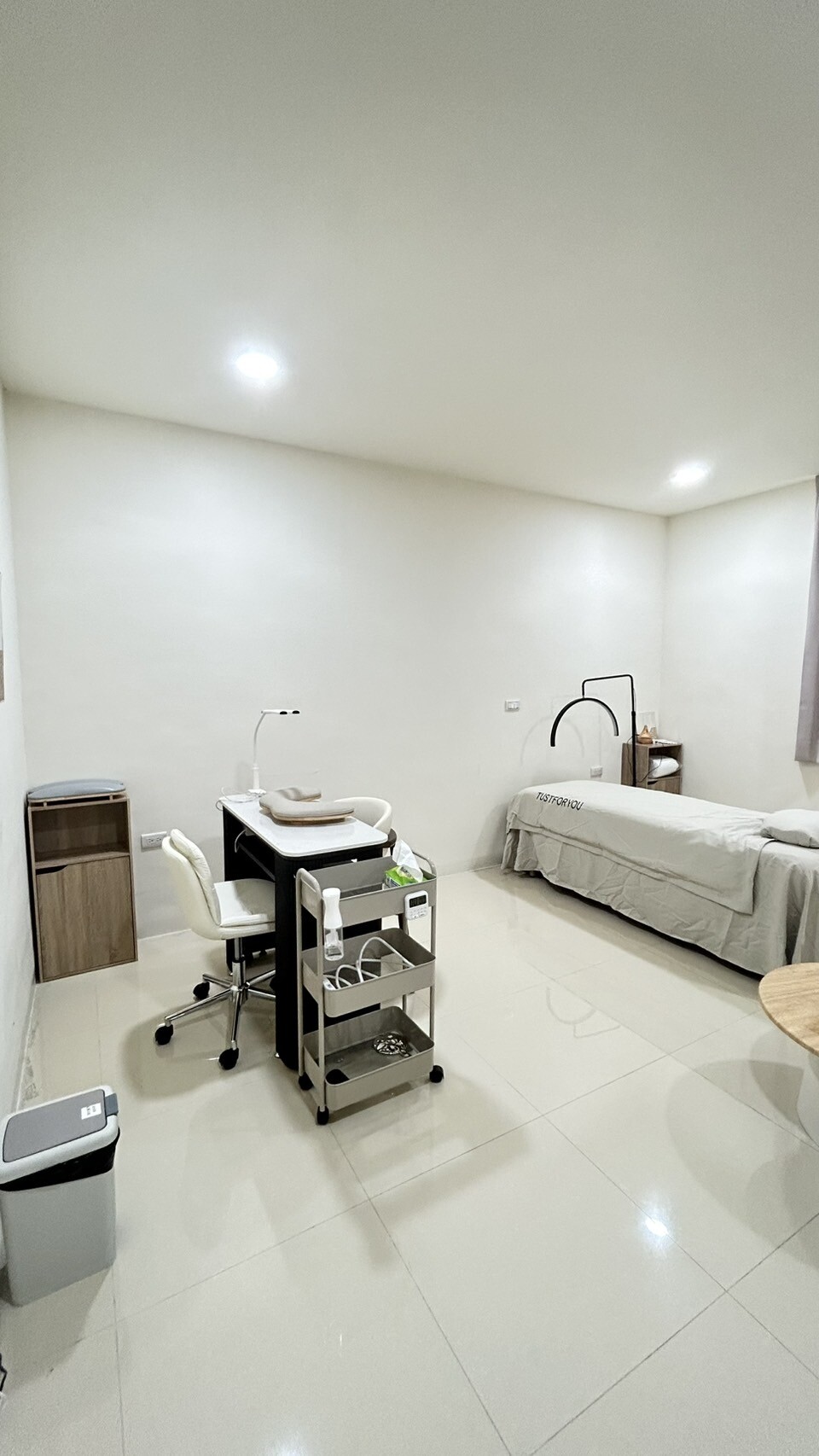 設備:(美容床、檯燈、台車、鋪巾、客座小沙發休息區、冷暖氣、置物櫃、提供一次性床單、含WiFi )