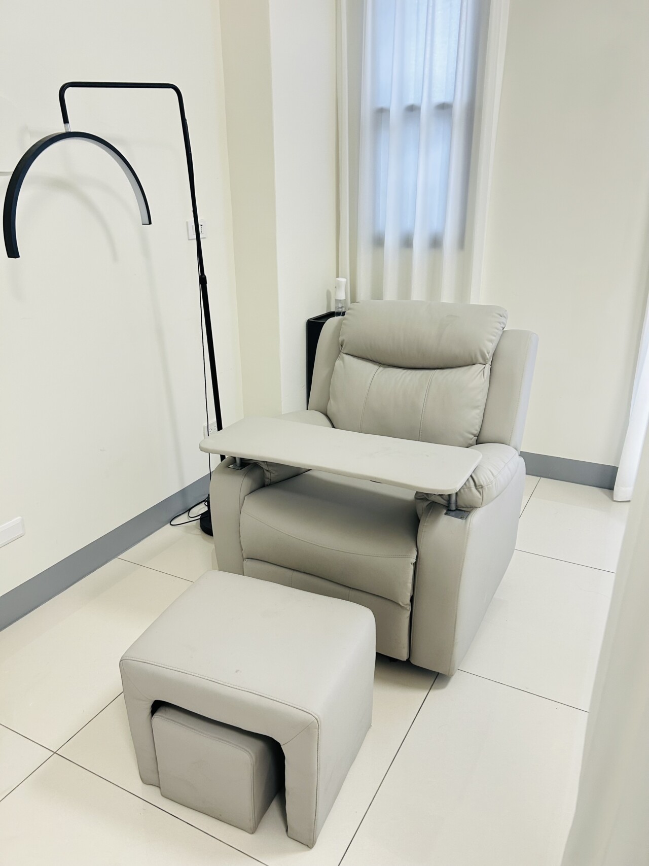 設備:(沙發美容椅、置物櫃、圓型燈、客座小沙發休息區、冷暖氣、含WiFi )
