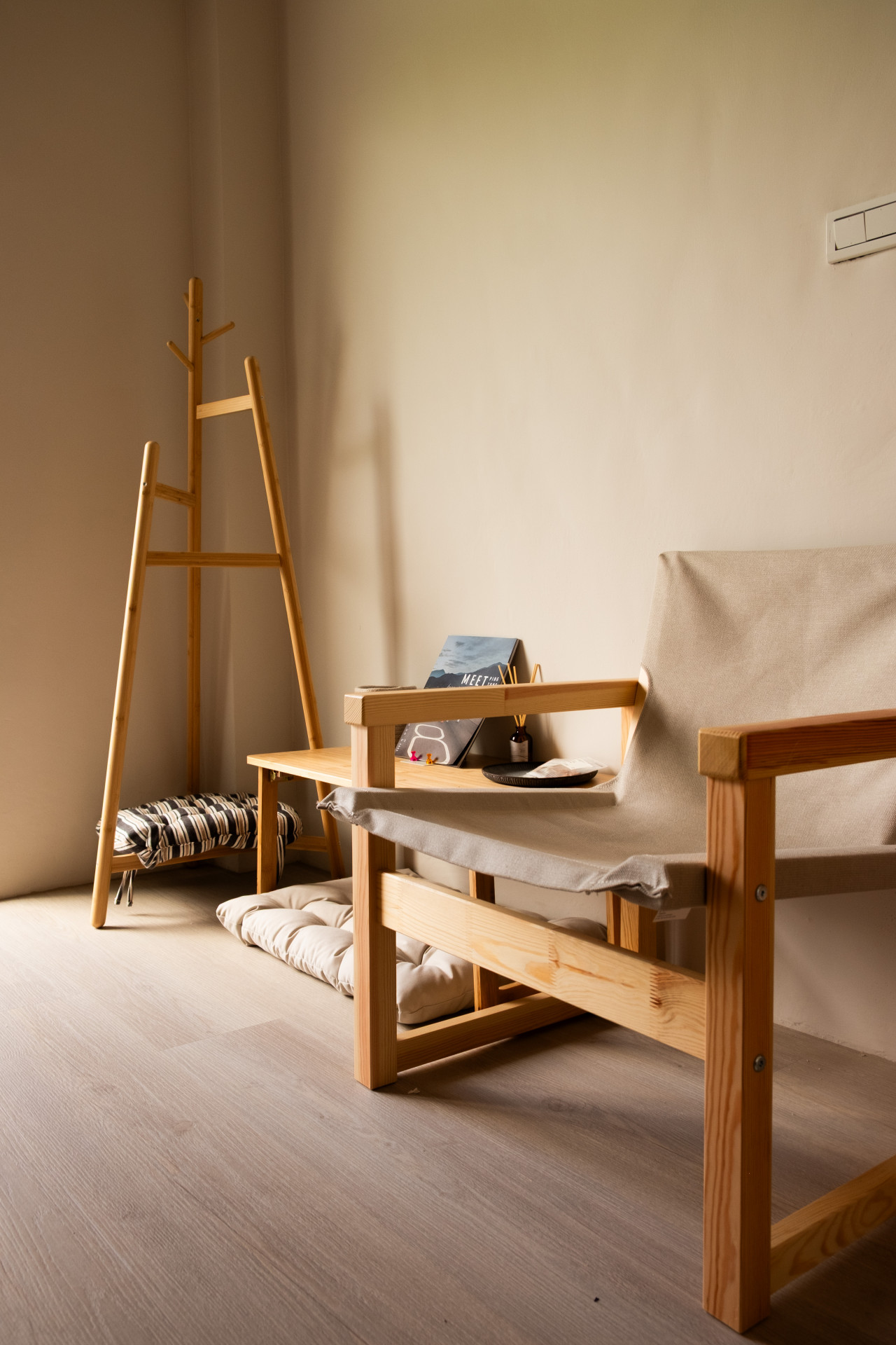設有冷氣、免費 Wi-Fi、小茶几、衣架與充足插座,房外衛浴為共用乾濕分離設計,另備毛巾、吹風機與基礎盥洗用品,讓你輕裝上路、自在入住。適合情侶、好友,或渴望一場獨處慢活時光的你。