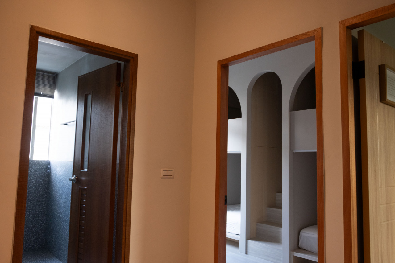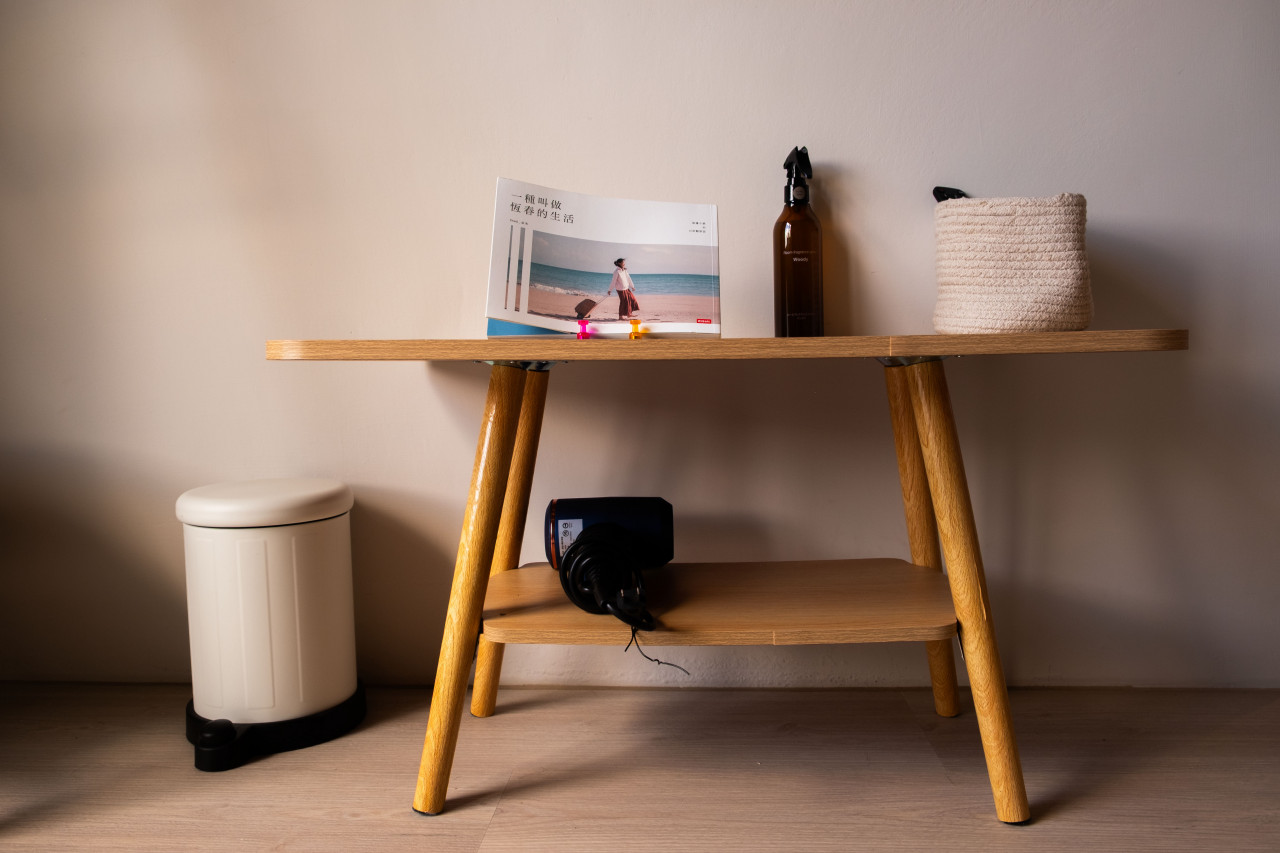 房內設有冷氣、免費 Wi-Fi、衣架、小茶几與充足插座,適合情侶或好友共度悠閒假期。衛浴採共用乾濕分離設計,另備有毛巾、吹風機與基礎盥洗用品,貼心滿足基本需求。
