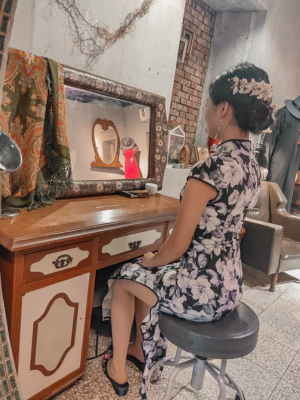 —旗袍體驗不包括妝髮,各位美女們要記得先畫好妝再去,但如果有準時到場並且時間夠的話,店家會幫客人盤髮,我覺得有沒有盤髮整個人的氣勢差很多,所以有預約的美女們一定要準時到場喔!