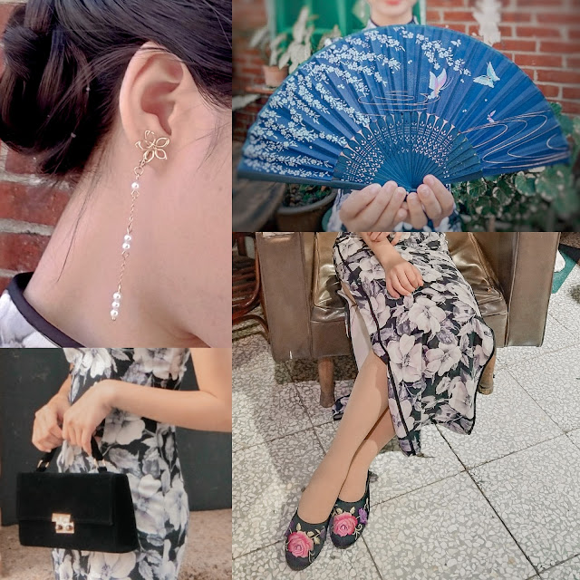 -想要在室內拍照的話店家會免費借用手工繡花鞋,如果要穿出去則要支付$80/雙的租借費用(附贈全新襪套),所以建議大家自行攜帶跟鞋來搭配旗袍
