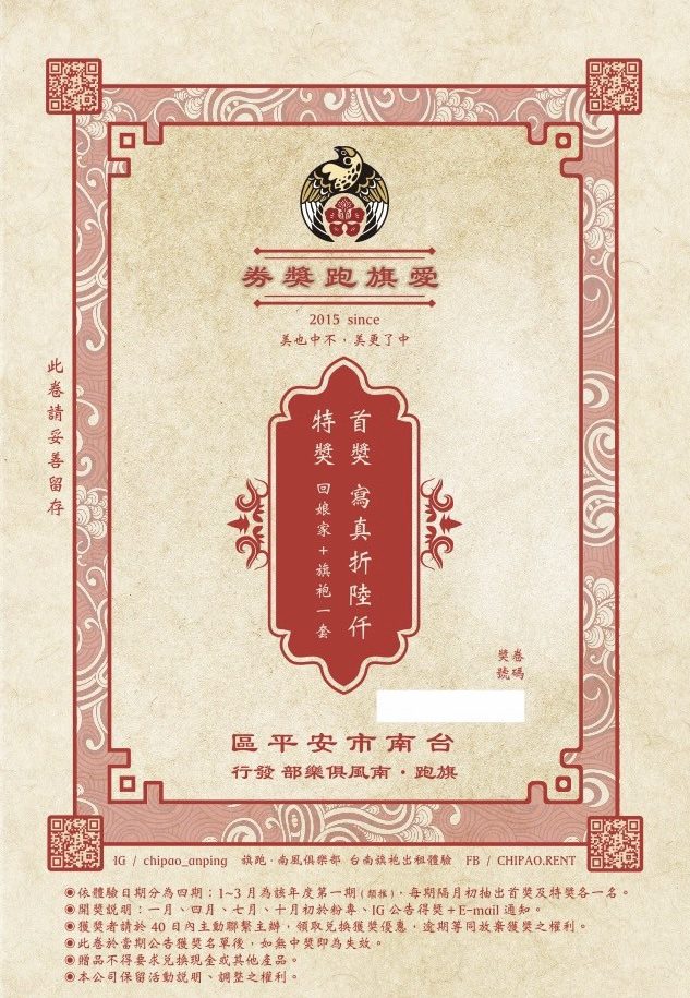 旗跑 旗袍出租體驗|愛旗跑獎券中獎通知