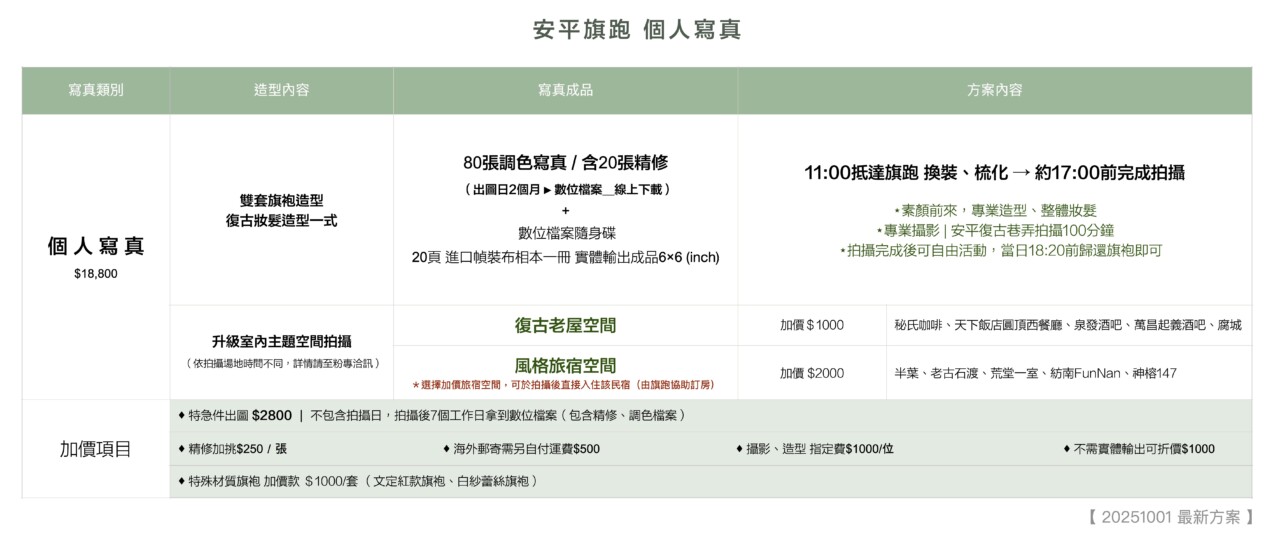 - 本方案拍攝過程中,攝影師將進行現場紀錄,部分影像可能用於未來活動或社群平台分享。