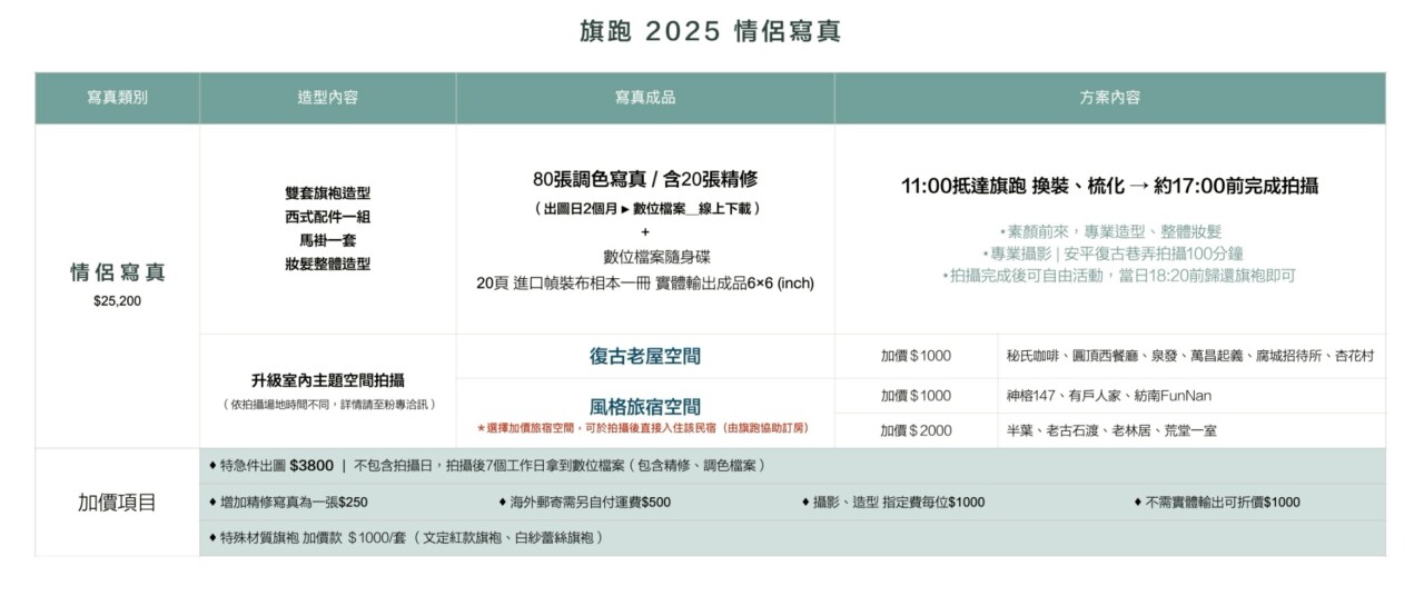 - 本方案拍攝過程中,攝影師將進行現場紀錄,部分影像可能用於未來活動或社群平台分享。