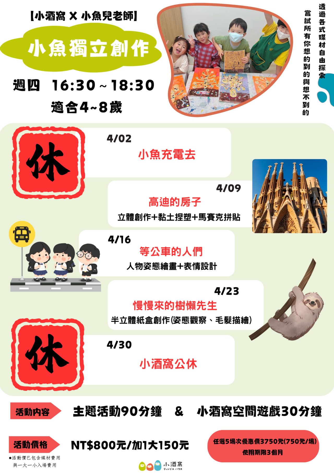 ✦活動價已包含媒材費用與1大1小入場費用,第2位大人入場才須加購