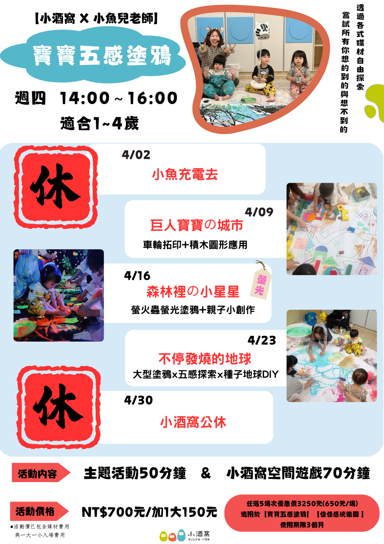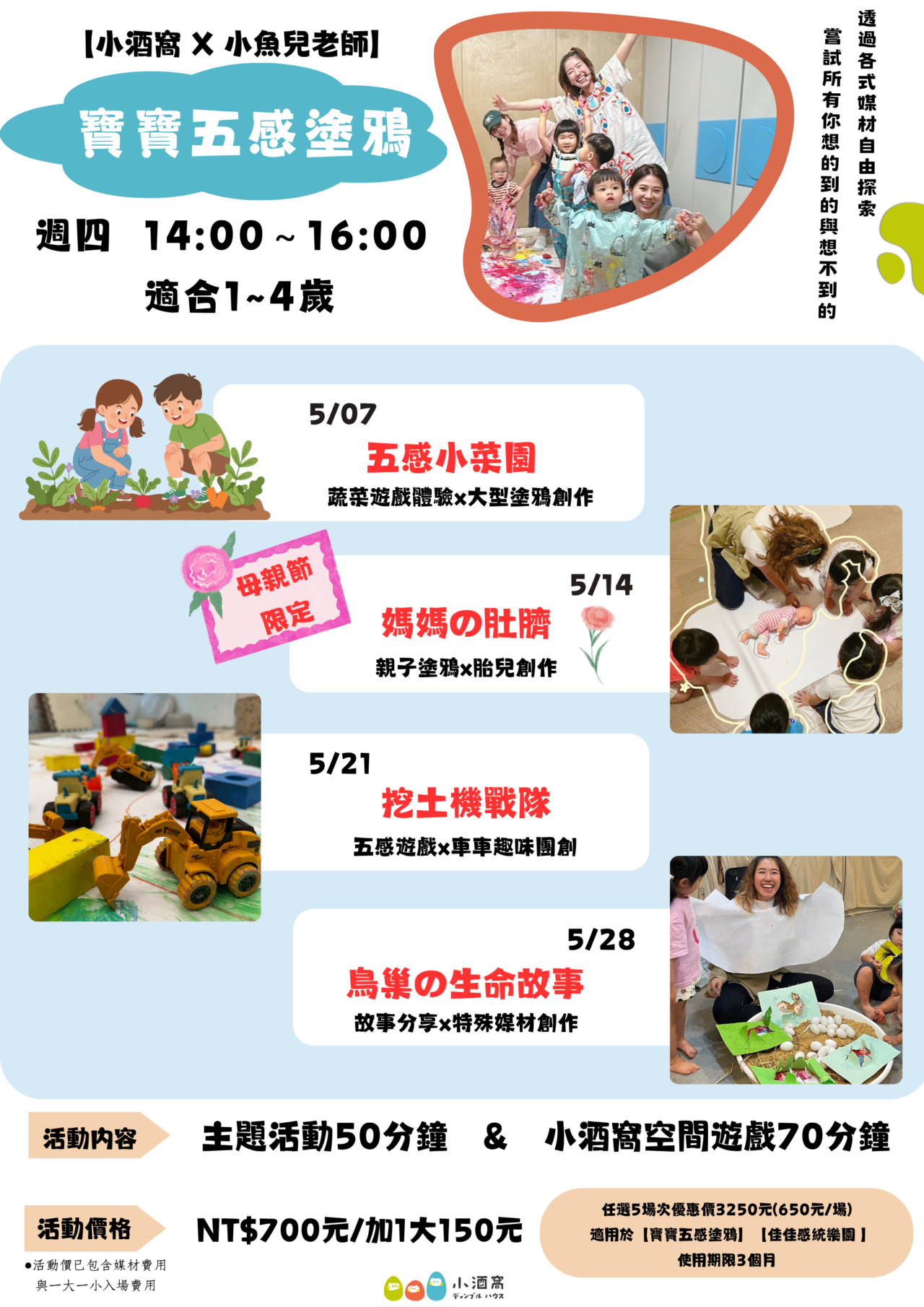 ➤活動內容:寶寶塗鴉50分&小酒窩空間遊戲70分