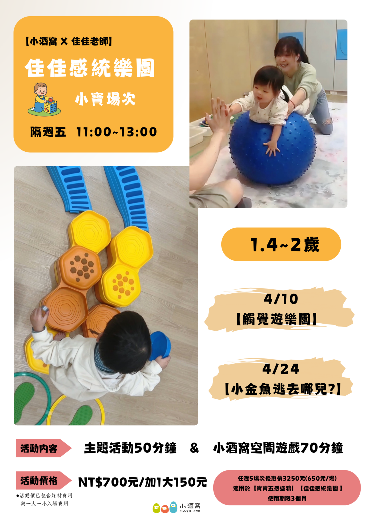 ➤活動內容:感統活動50分&小酒窩空間遊戲70分