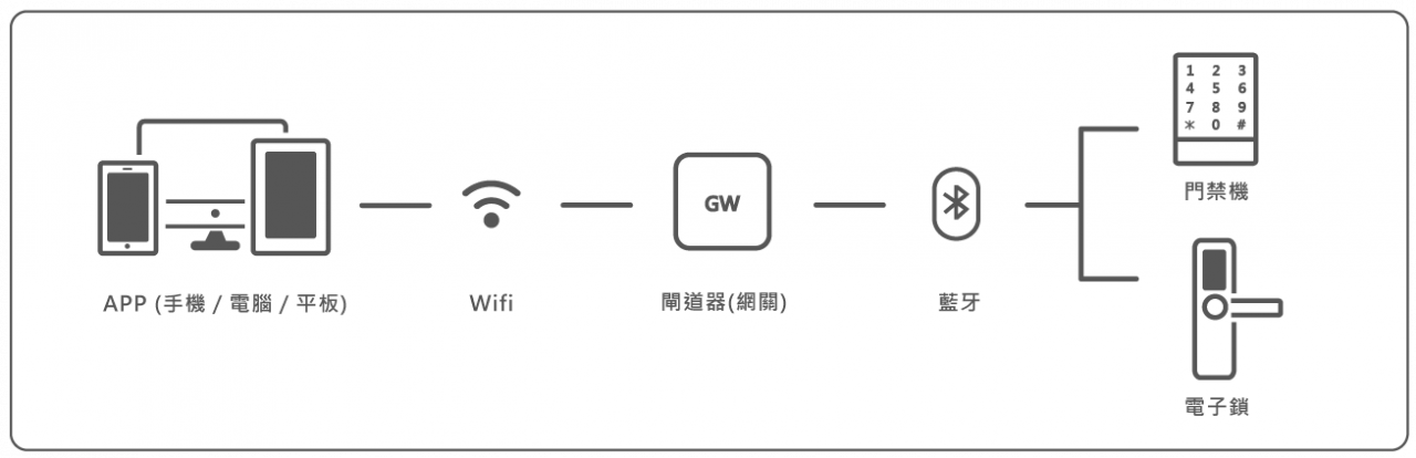 網關可以藍芽對應到複數的門鎖,藍芽距離約為十幾公尺,如果門鎖不多,且距離近的話,買一組就夠了。建議可以先購買一組,