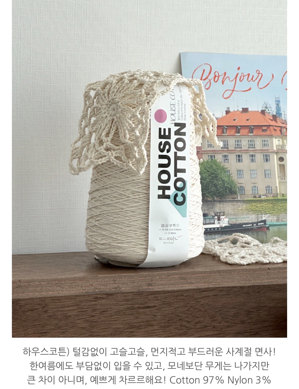 韓國材料包內容物:韓國製線材、罩衫+背心織圖、未公開韓文影片Qrcode、附贈台灣老牌鳳冠5號/6號鉤針(可攜帶自己慣用的5號或6號鉤針)縫針、記號釦、品牌束口袋