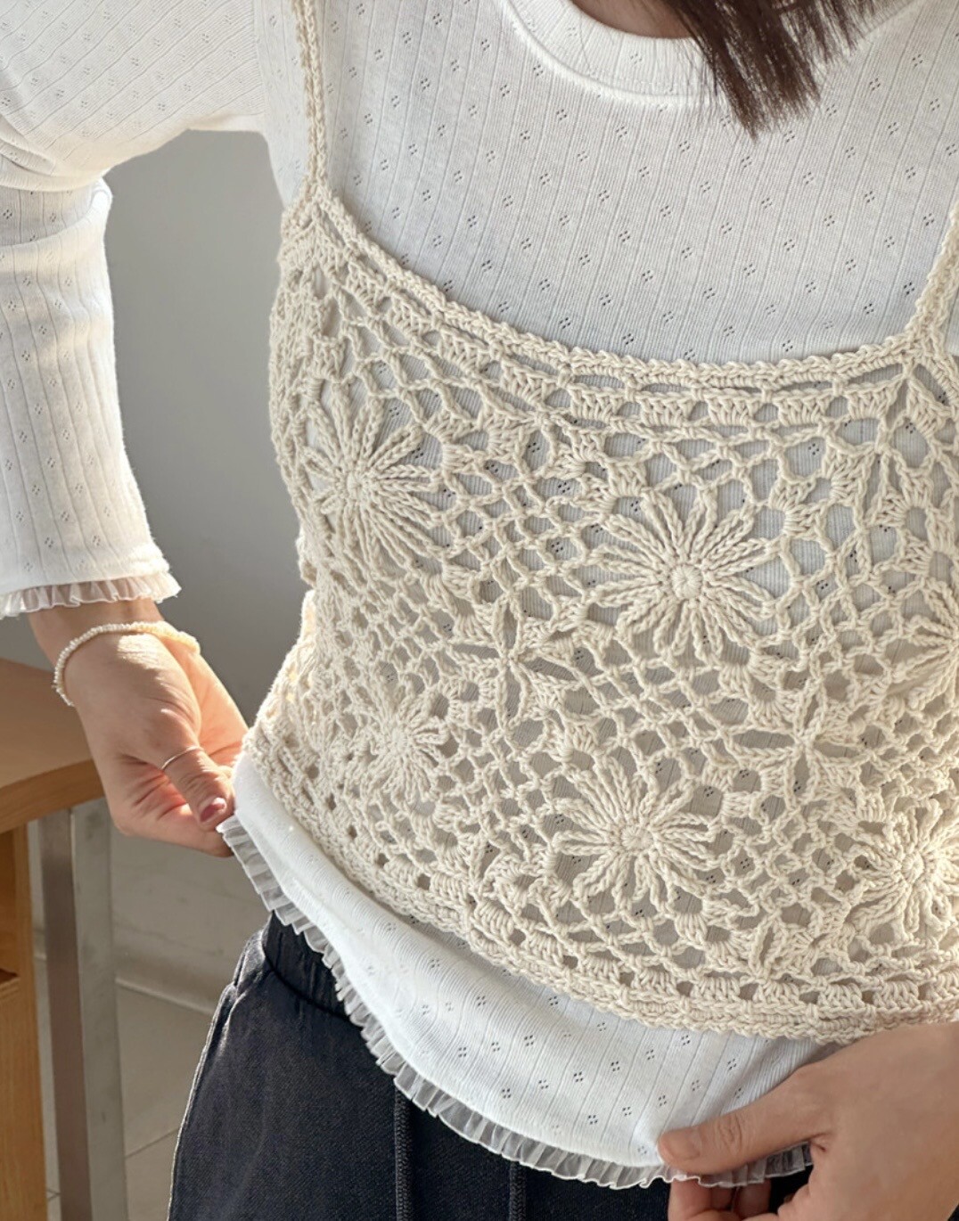 這件罩衫直接運用我在證照課學到的鉤織技巧,絕不藏私傳授!