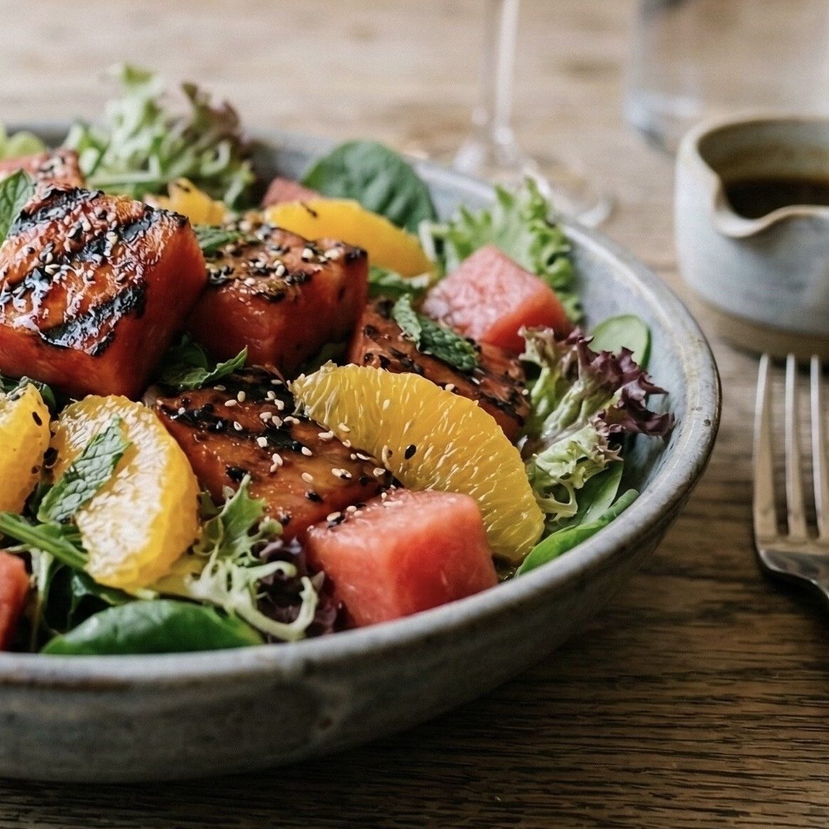 製作品項:炙燒西瓜沙拉、夏威夷漢堡排、西瓜西米糕。