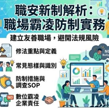 人力資源 職涯諮詢 勞動法規相關 企業內訓 特價 (7/11開課)全台唯一,手把手不藏私~人資顧問轉型系列課-週六 (第二梯次) NT$88,000 NT$56,000 加入購物車 特價 (顧問單堂1日課)手把手不藏私~人資顧問轉型系列課 NT$12,000 NT$10,000 加入購物車 特價 「HR及管理主管神助手:勞法疑難全天候熱線」 NT$50,000 NT$8,888 加入購物車 特價 4/25深度績效面談-看見問題、帶出行動、選對人才 NT$4,000 NT$3,000 加入購物車 特價 5/16手把手教你企業勞檢實務因應對策 NT$3,600 NT$3,000 加入購物車 特價 5/21免費~HR職涯分享:從 HR Generalist 到 HRBP NT$3,000 NT$0 加入購物車 特價 5/23搞懂薪酬基礎實務,助你進階 Full Function HR! NT$3,600 NT$3,000 加入購物車 特價 5/29《假承攬真僱傭?企業最常踩雷的用人關係解析》 NT$3,000 NT$1,200 加入購物車 特價 5/29《職安新制解析:職場霸凌防制實務——從法規遵行、調查程序到數位風險控管》 NT$3,000 NT$1,200 加入購物車 特價 5/3從「回復工作權」的法律地雷,看 PIP 績效改進的專業正義 NT$8,000 NT$3,200 加入購物車 特價 6/13搞懂薪酬基礎實務,助你進階 Full Function HR! NT$3,600 NT$3,000 加入購物車 特價 6/14《假承攬真僱傭?企業最常踩雷的用人關係解析》 NT$3,000 NT$1,200 加入購物車 特價 6/14《職安新制解析:職場霸凌防制實務——從法規遵行、調查程序到數位風險控管》 NT$3,000 NT$1,200 加入購物車 特價 6/6手把手教你企業勞檢實務因應對策 NT$3,600 NT$3,000 加入購物車 特價 7/11開課~HR與任一專業都能轉型顧問的系列課,您別錯過了! NT$88,000 NT$56,000 加入購物車 特價 人資顧問轉型系列課-假日週六2班(企業包班) NT$88,000 NT$56,000 加入購物車 特價 人資顧問轉型系列課-平日周二班(企業包班) NT$88,000 NT$56,000 加入購物車 特價 企業一年無限勞法顧問+打造AI機器人服務 NT$60,000 NT$54,000 加入購物車 特價 專為中小企業規劃~勞法與勞動檢查諮詢(一年無限次數) NT$50,000 NT$8,888 加入購物車 特價 全台唯一【筆尖下的職涯顯影】履歷自傳書寫療癒班(日班) NT$4,000 NT$1,200 加入購物車 職涯諮詢 NT$4,000 2 小時 立即預約 特價 「HR及管理主管神助手:勞法疑難全天候熱線」 NT$50,000 NT$8,888 加入購物車 特價 5/3從「回復工作權」的法律地雷,看 PIP 績效改進的專業正義 NT$8,000 NT$3,200 加入購物車 特價 企業一年無限勞法顧問+打造AI機器人服務 NT$60,000 NT$54,000 加入購物車 特價 專為中小企業規劃~勞法與勞動檢查諮詢(一年無限次數) NT$50,000 NT$8,888 加入購物車 特價 (7/11開課)全台唯一,手把手不藏私~人資顧問轉型系列課-週六 (第二梯次) NT$88,000 NT$56,000 加入購物車 特價 (顧問單堂1日課)手把手不藏私~人資顧問轉型系列課 NT$12,000 NT$10,000 加入購物車 特價 「HR及管理主管神助手:勞法疑難全天候熱線」 NT$50,000 NT$8,888 加入購物車 特價 4/25深度績效面談-看見問題、帶出行動、選對人才 NT$4,000 NT$3,000 加入購物車 特價 5/16手把手教你企業勞檢實務因應對策 NT$3,600 NT$3,000 加入購物車 特價 5/21免費~HR職涯分享:從 HR Generalist 到 HRBP NT$3,000 NT$0 加入購物車 特價 5/23搞懂薪酬基礎實務,助你進階 Full Function HR! NT$3,600 NT$3,000 加入購物車 特價 5/29《假承攬真僱傭?企業最常踩雷的用人關係解析》 NT$3,000 NT$1,200 加入購物車 特價 5/29《職安新制解析:職場霸凌防制實務——從法規遵行、調查程序到數位風險控管》 NT$3,000 NT$1,200 加入購物車 特價 5/3從「回復工作權」的法律地雷,看 PIP 績效改進的專業正義 NT$8,000 NT$3,200 加入購物車 特價 6/13搞懂薪酬基礎實務,助你進階 Full Function HR! NT$3,600 NT$3,000 加入購物車 特價 6/14《假承攬真僱傭?企業最常踩雷的用人關係解析》 NT$3,000 NT$1,200 加入購物車 特價 6/14《職安新制解析:職場霸凌防制實務——從法規遵行、調查程序到數位風險控管》 NT$3,000 NT$1,200 加入購物車 特價 6/6手把手教你企業勞檢實務因應對策 NT$3,600 NT$3,000 加入購物車 特價 7/11開課~HR與任一專業都能轉型顧問的系列課,您別錯過了! NT$88,000 NT$56,000 加入購物車 特價 人資顧問轉型系列課-假日週六2班(企業包班) NT$88,000 NT$56,000 加入購物車 特價 人資顧問轉型系列課-平日周二班(企業包班) NT$88,000 NT$56,000 加入購物車 特價 企業一年無限勞法顧問+打造AI機器人服務 NT$60,000 NT$54,000 加入購物車 特價 專為中小企業規劃~勞法與勞動檢查諮詢(一年無限次數) NT$50,000 NT$8,888 加入購物車
