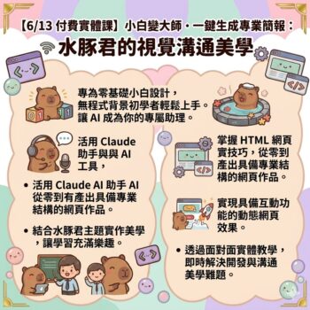 - 手把手教學:提供詳細的 Gmail 登錄與工具操作手冊,確保每位學員都能無痛使用 AI 神器。