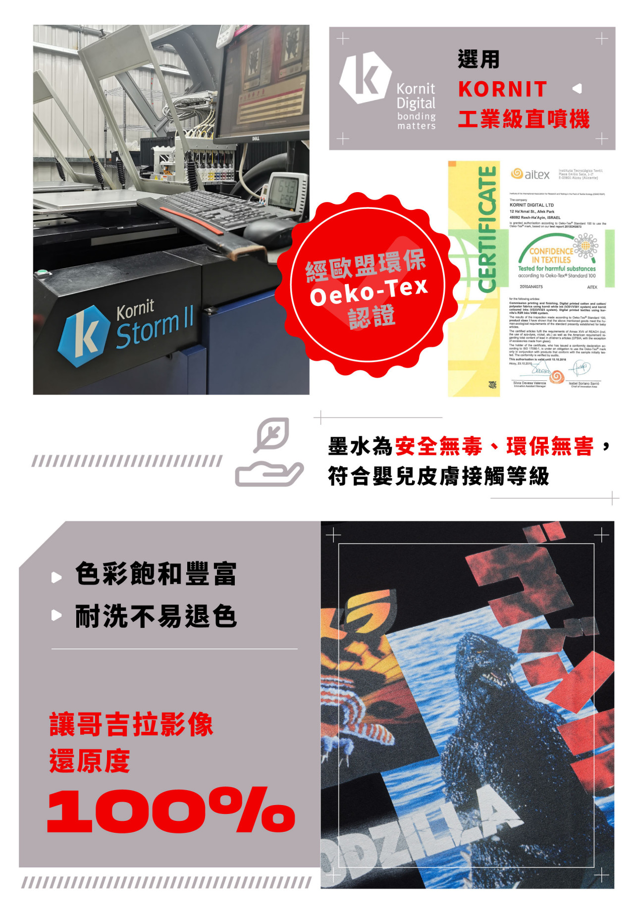 這是直噴顏料的味道,經歐盟環保Oeko-Tex認證,墨水為安全無毒、環保無害,符合嬰兒皮膚接觸等級,經下水洗過一次味道即會消散。