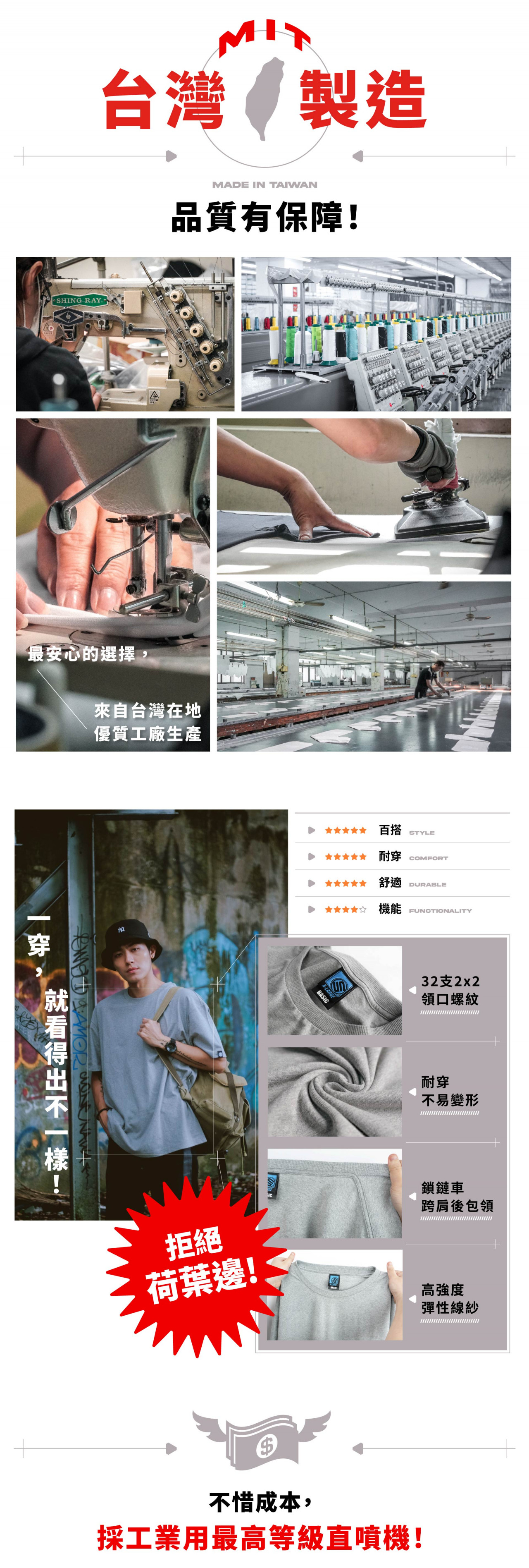選對尺寸的情況下,不用擔心激凸喔!布料為200g重厚度純棉,不會過薄、或太厚而感覺悶熱。