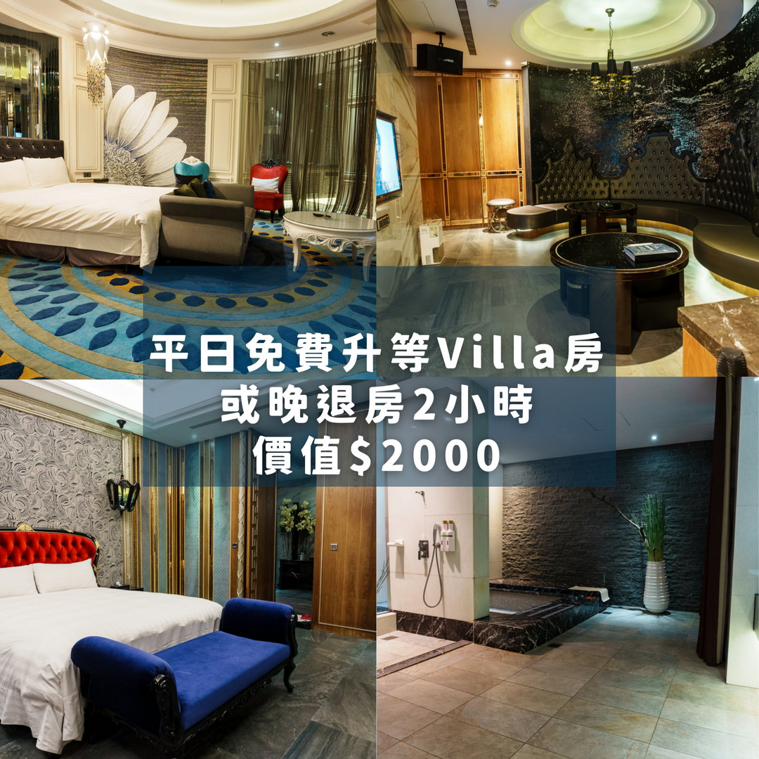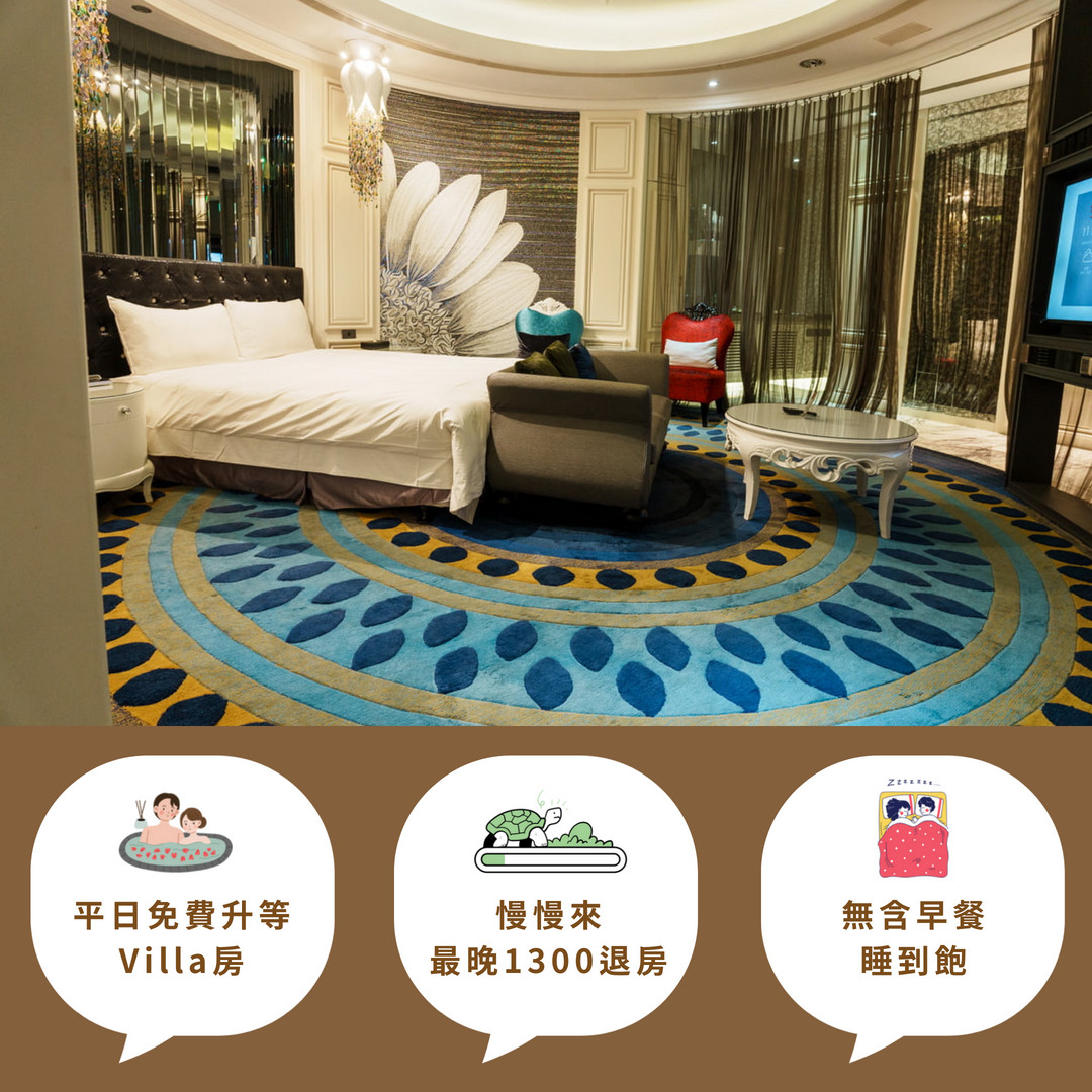 1.升等VIILA房(一大床、有大浴池)入房時間18:00、退房時間12:00