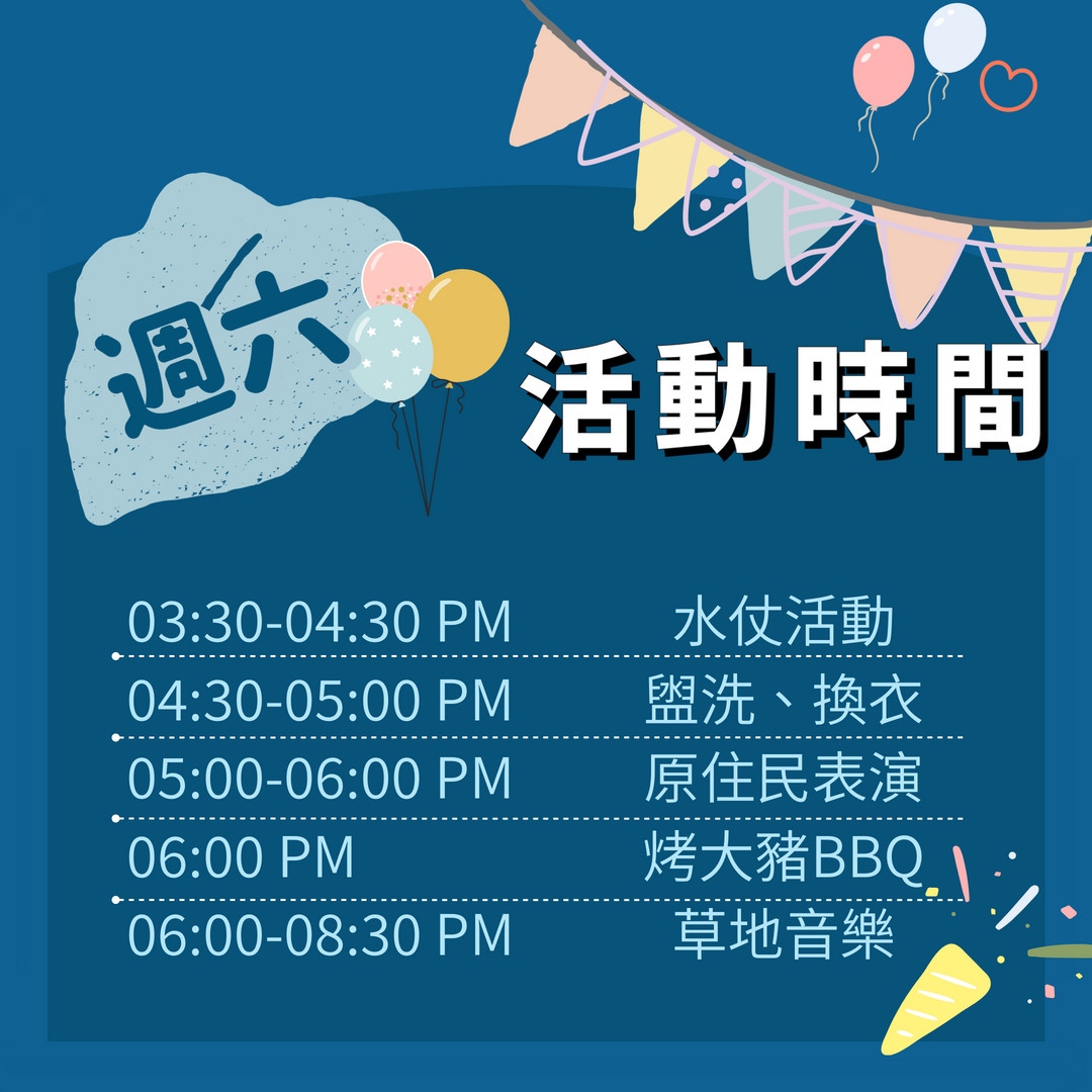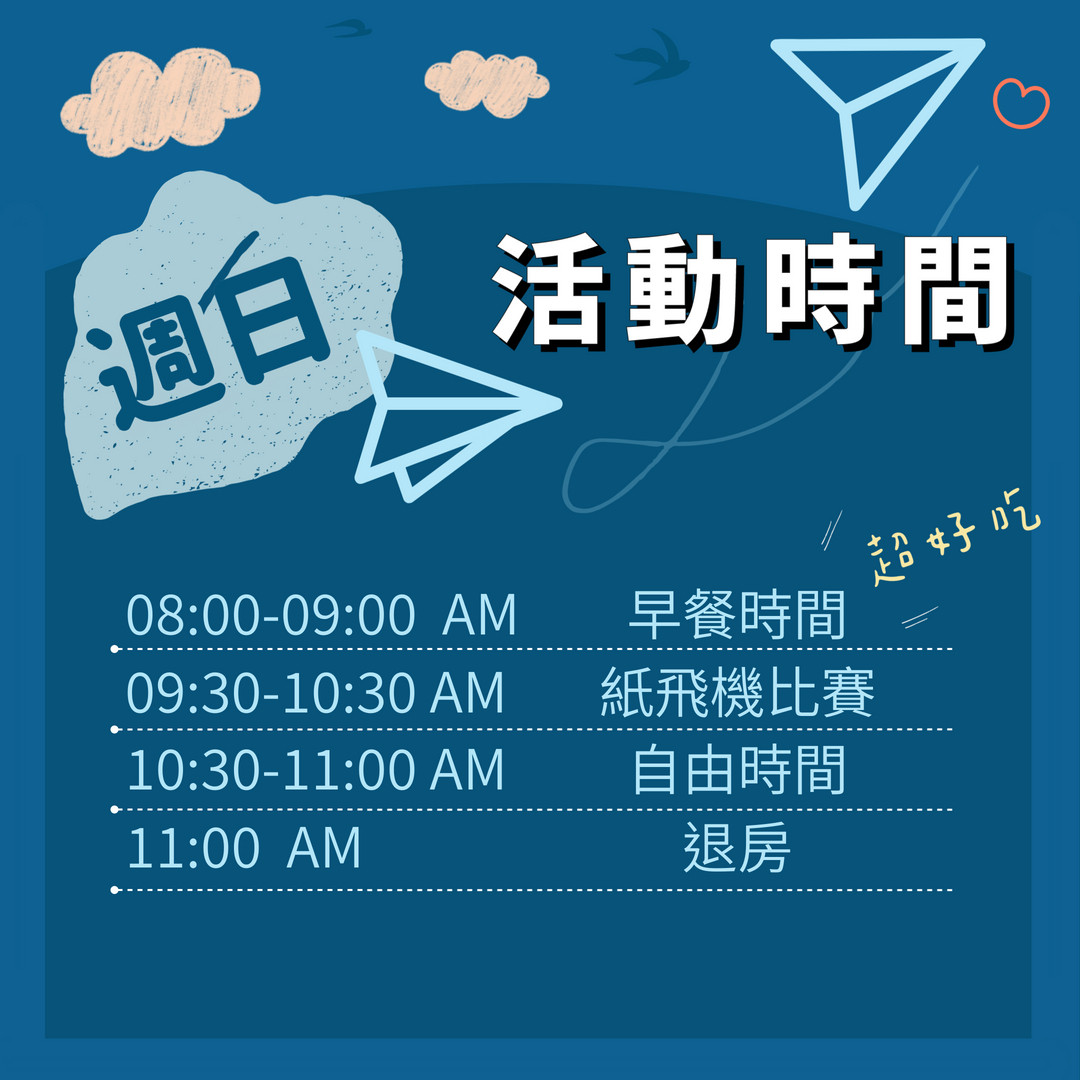 我們正式的活動是從週六下午開始,限量贈送活動前一天週五就可以入住,可以於週五下午的15:00入場喔!