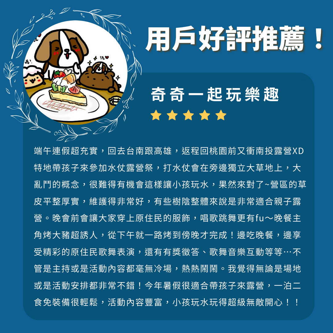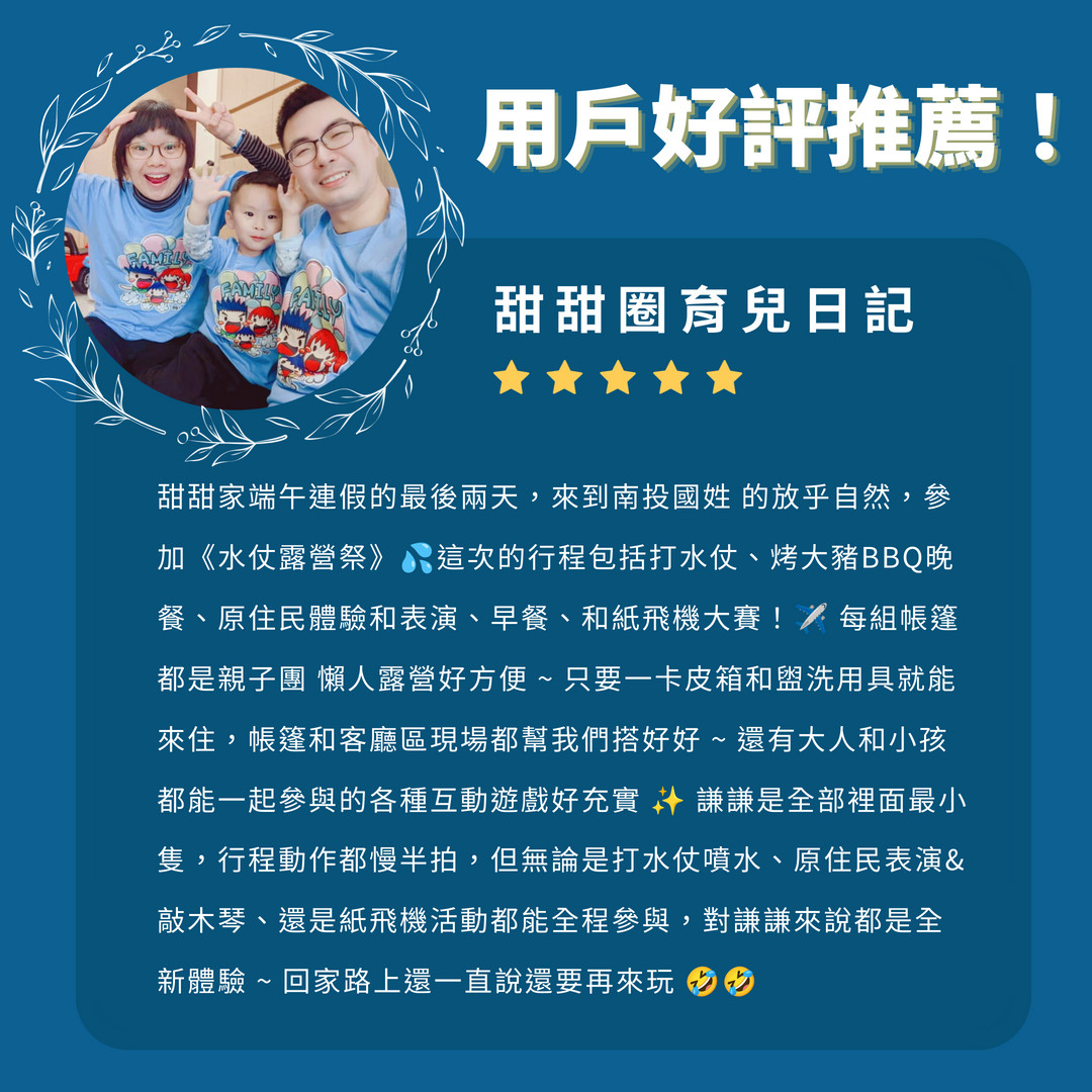 因為露營帳棚的限制,所以此專案限制最多兩大兩小,無法加人、加床