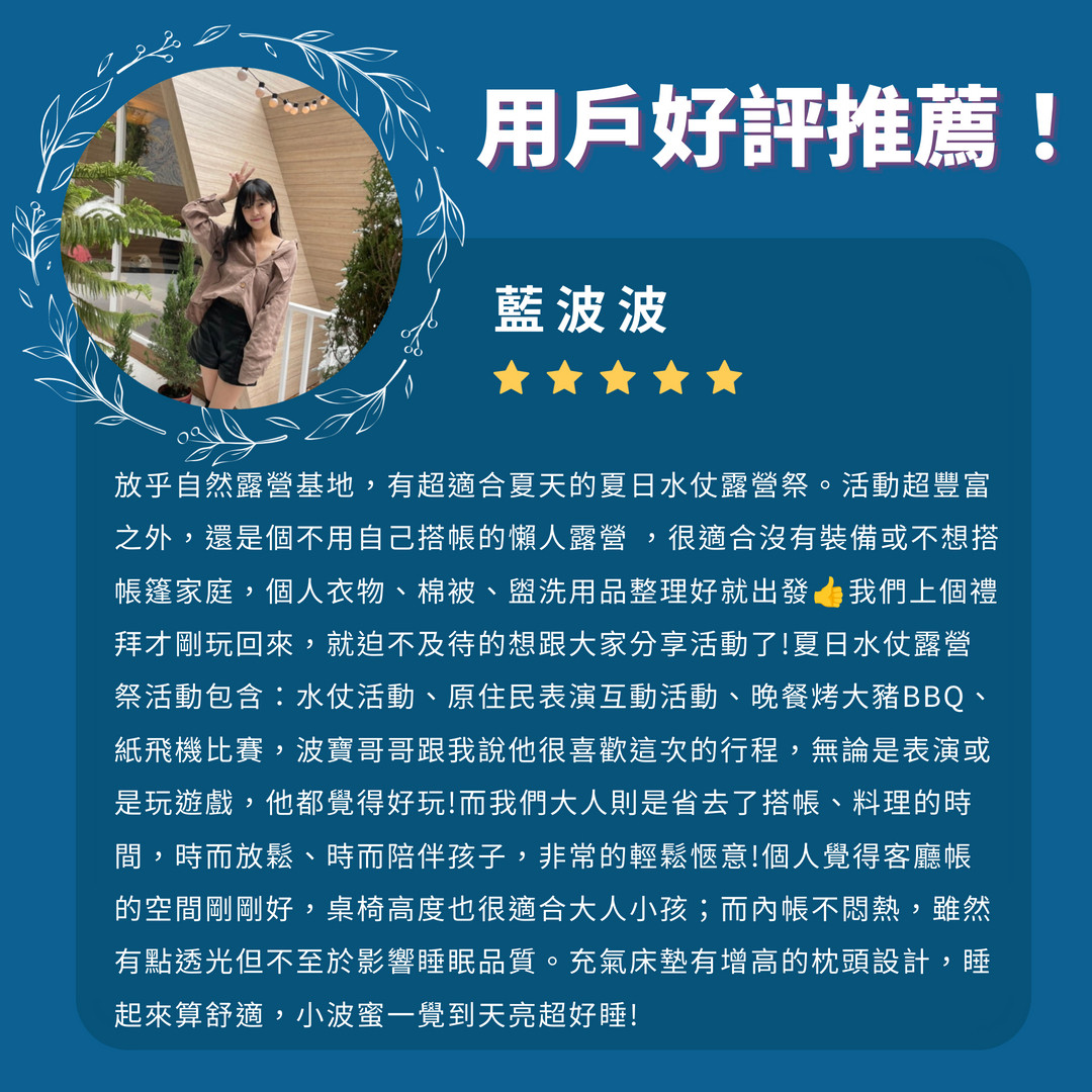 本活動為戶外活動,且重點是讓孩子玩的開心、歡樂,所以聲音會較大,若有強烈需要個人空間、睡眠品質需求高、需要寧靜的朋友,下單前請考慮清楚
