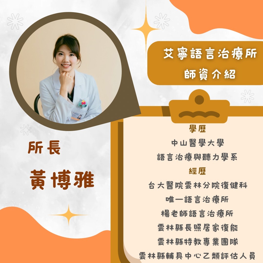 艾寧語言治療所-所長 黃博雅 語言治療師,