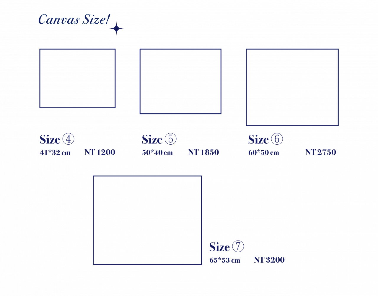 選擇自己喜歡的畫布大小,若沒有頭緒可以丈量自己想要掛放的位置大小喔。