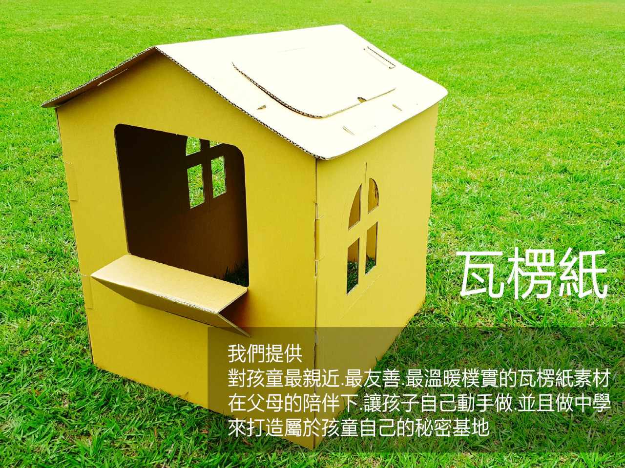 我們提供,對孩童最親近、最友善、最溫暖樸實的瓦楞紙為素材,在父母的陪伴下,讓孩子自己動手做,並且做中學,來打造屬於孩子自己的秘密基地,隨時能夠在屬於小朋友自己的私密空間裡,學習對於結構組立(理性的科學精神)以及塗鴉彩繪(感性的美學創作)的能力。培養孩子文武雙全、允文允武的人格特質。