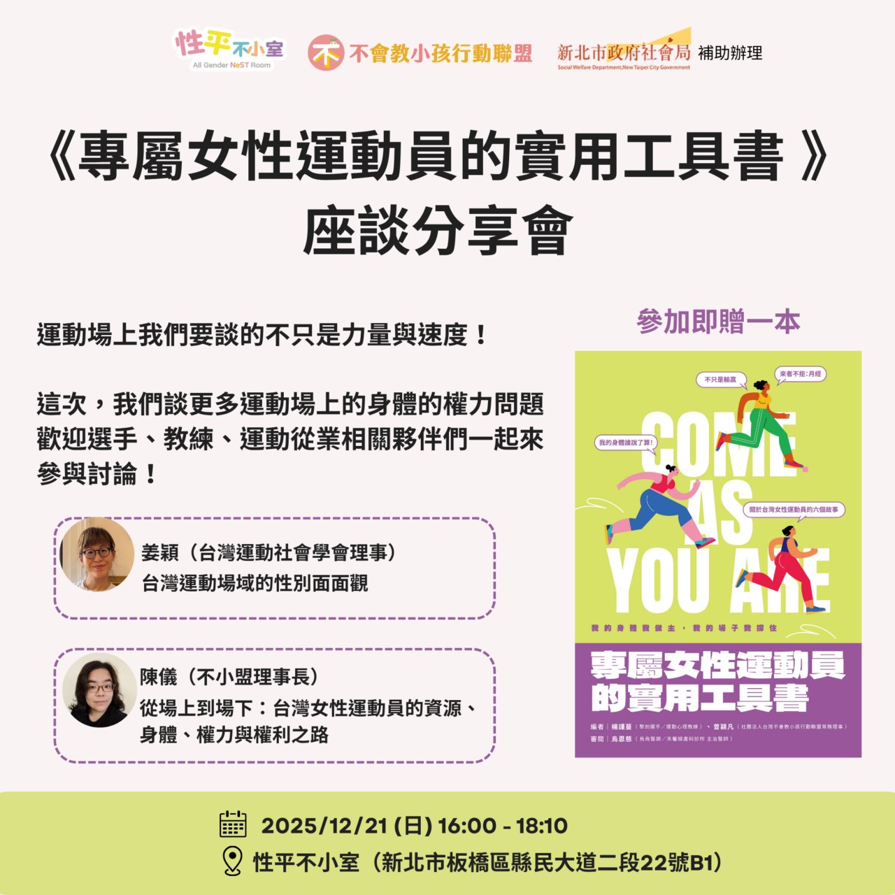 【2025年12月免費活動】〈運動場上的女性:身體、界線與勇氣〉座談會(12/21)