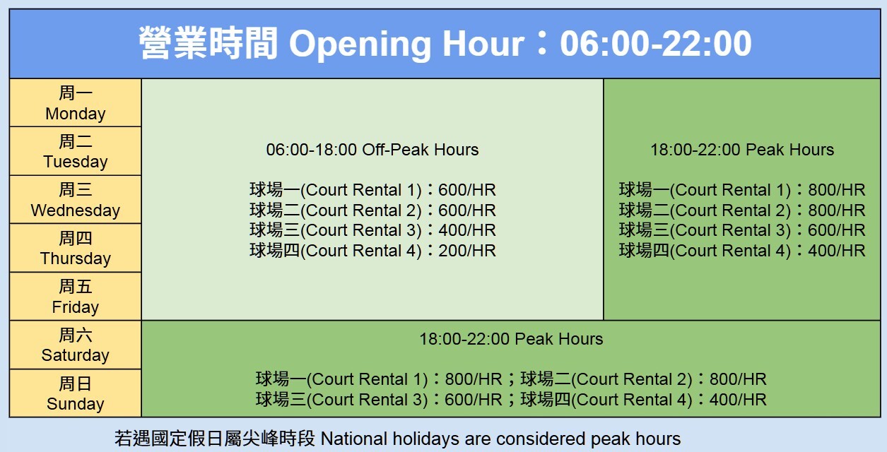 3、為維護環境品質,本館禁止攜帶有濃厚味道之食物入場食用,一般垃圾請自行帶走,回收請投入飲水機旁的回收箱,懇請大家一起愛護打球環境。