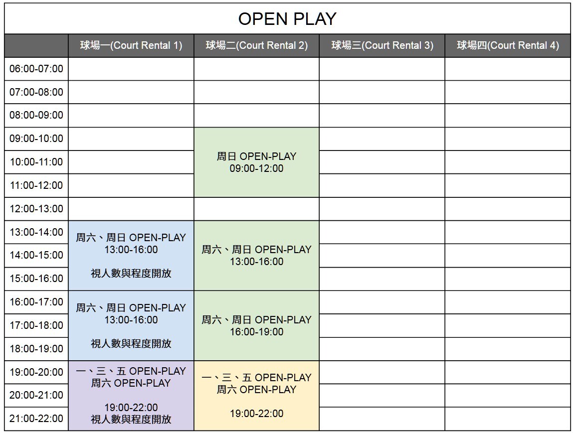 本場地適合社團、親友、公司團體定期舉辦球敘,促進交流並建立友善的匹克球社群。同時亦可作為專業教練與學員的教學、訓練場所。此外,無論是初學者自主練習,或具備實力的球友進行對打,本場地皆能提供完善的使用環境。