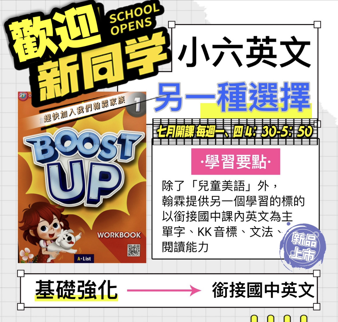 翰霖課程簡介 國中英數自然 國三全科班 國小課輔班 英文班 數學班 個別開設:科普班(科學教育) 推廣科普教育 優惠中 國小超知識科普教育 2500 每一期4堂課 每月一本科學期刊(含實驗教材) 開學推廣月 試聽價500元 舊班生或優惠卷價 100元 適合 國小4 - 6年級學生 每星期三下午2:00-4:00 國小課輔班+數學+英文 NT$8000 6500 下午4:30-5:50 6:30-7:30/8:00 國小課輔班+數學班 5500 每月 4500 下午4:30-5:50 6:30-7:30/8:00 針對國中文法強化 國小六年級 英文先修班 NT$ 2500 每月/季繳 星期一、四 4:30-5:50 國小4、5、6數學課 NT$ 2500 每月/季繳 國小 六 數學班二、五 4:30-5:50 國小 五 數學班 一、四4:30-5:50 國小 四 數學班 三、四2:00-3:30 國中各年級數學 英文 自然 NT$ 2500 每月/每科/季繳 晚上6:10-9:10 額滿中 國三全科衝刺班 NT$ 12000 每月 抱歉 全科班 額滿嘍 晚上6:10-9:10