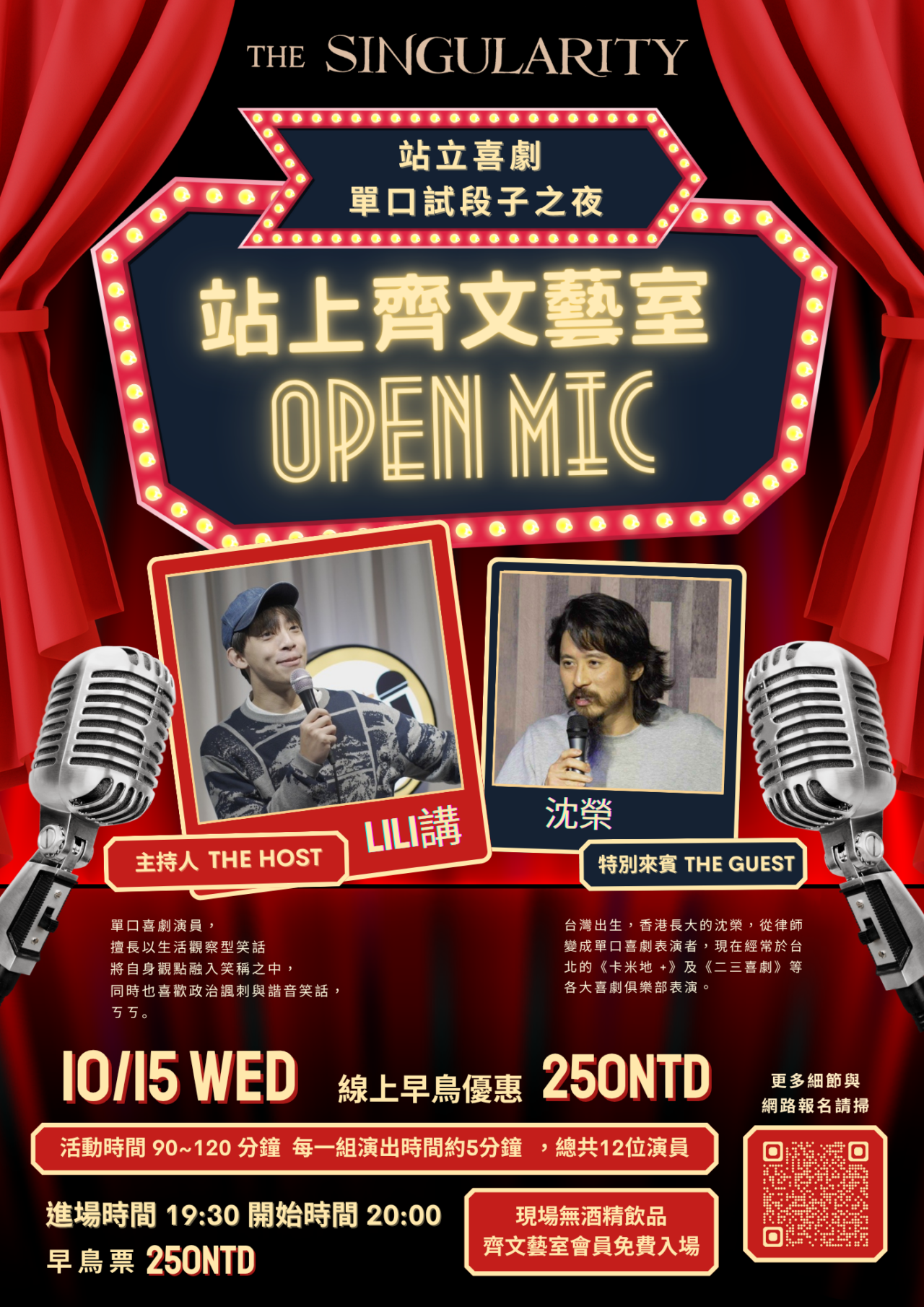多組不限形式喜劇open mic即興與觀眾互動,也許演員現場搞砸也可以是你期待的笑點