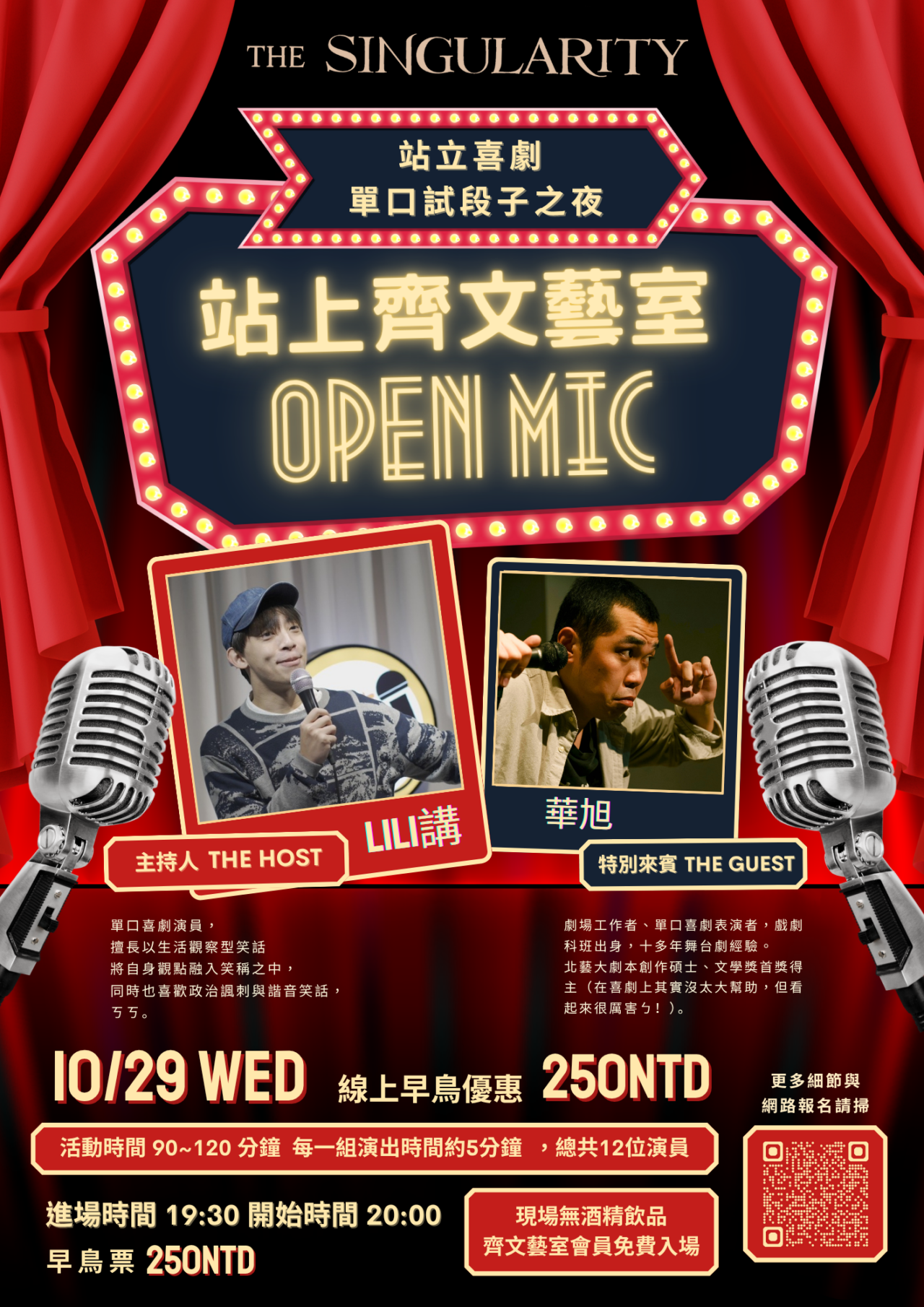 多組不限形式喜劇open mic即興與觀眾互動,也許演員現場搞砸也可以是你期待的笑點