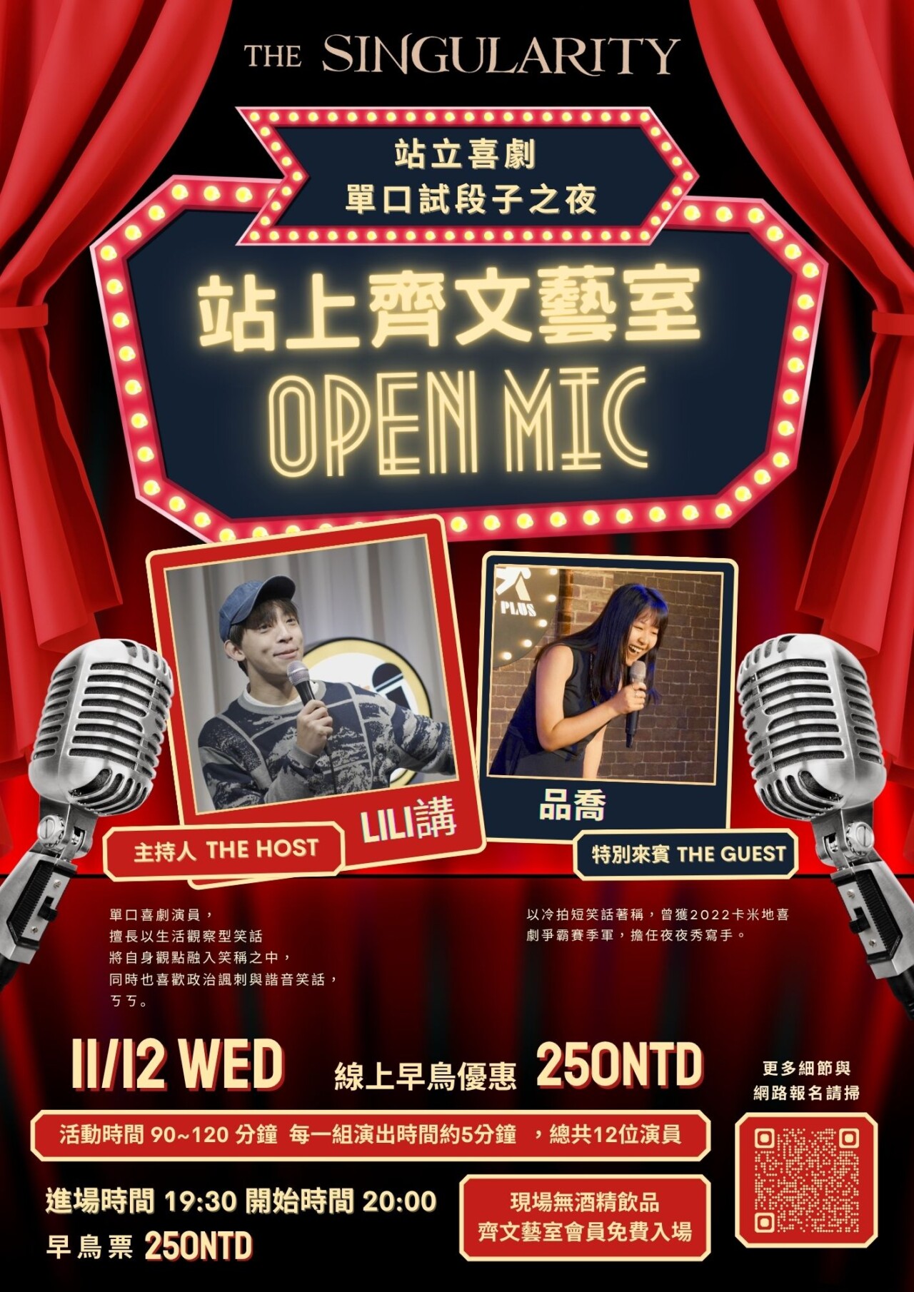 多組不限形式喜劇open mic即興與觀眾互動,也許演員現場搞砸也可以是你期待的笑點