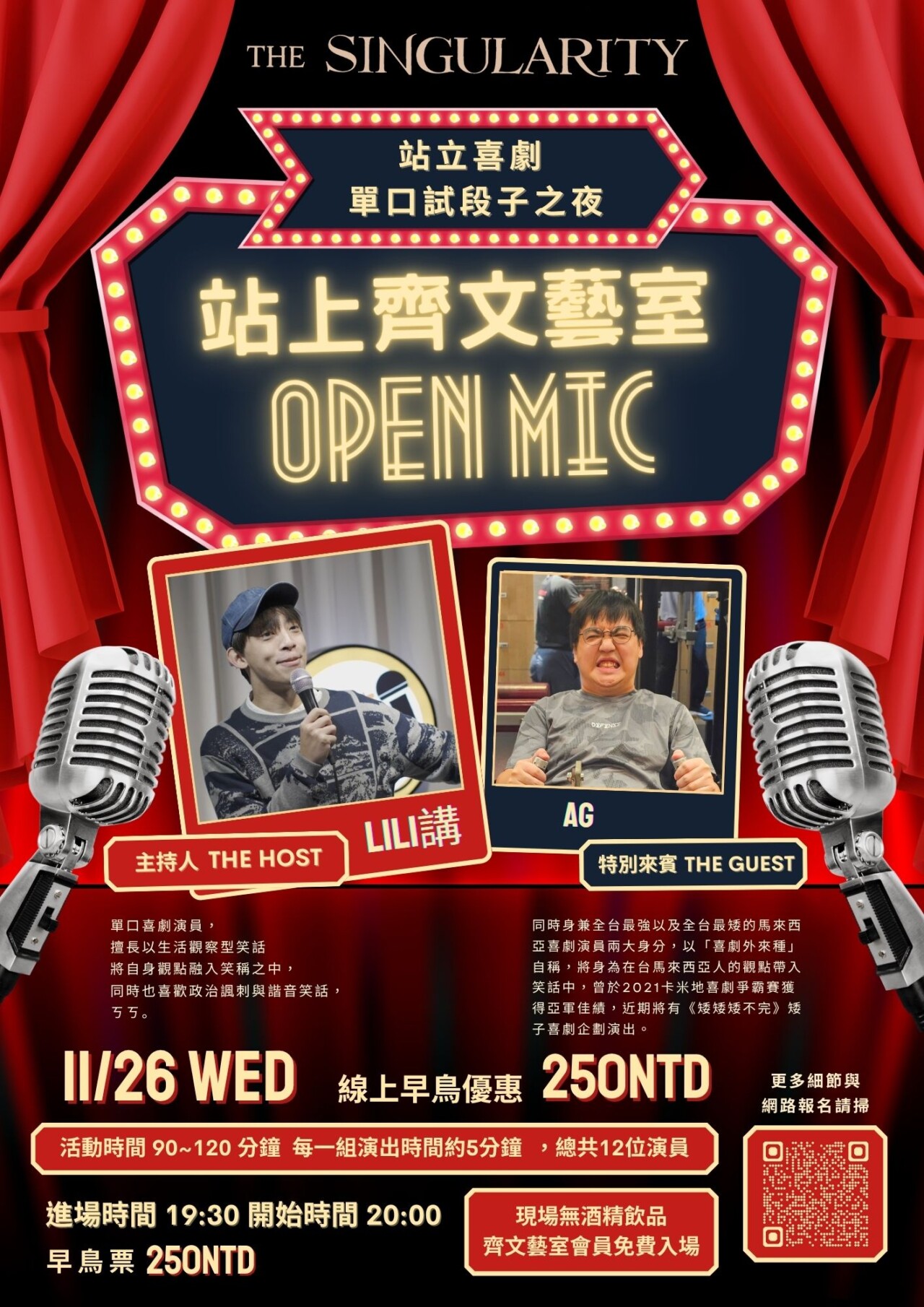 多組不限形式喜劇open mic即興與觀眾互動,也許演員現場搞砸也可以是你期待的笑點