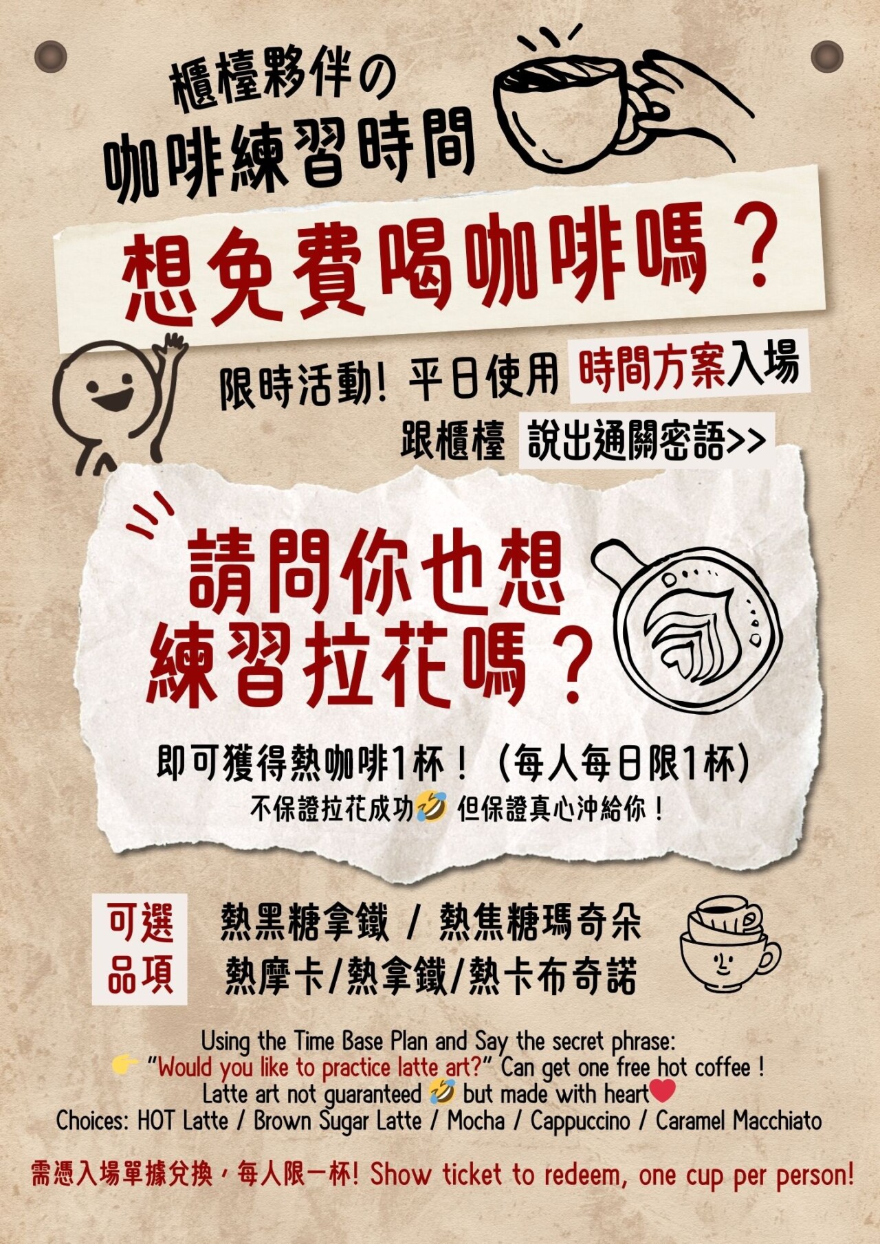 👉 “Would you like to practice latte art?” Can get one free hot coffee !