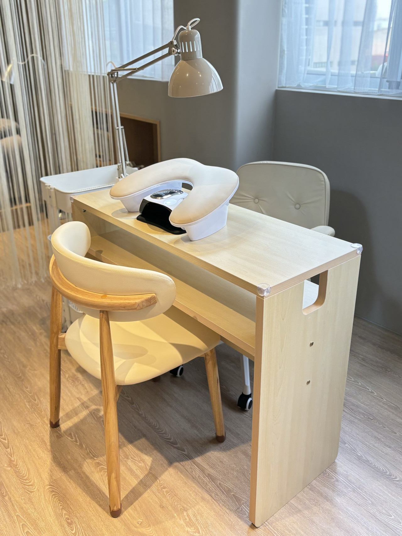 - 粉塵清理:美甲操作完畢後,請使用吧台抹布與吸塵器自主清理桌面與地面粉塵。