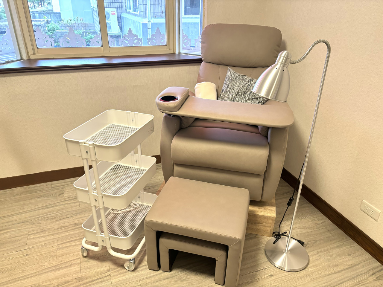 - 粉塵清理:美甲操作完畢後,請使用吧台抹布與吸塵器自主清理桌面與地面粉塵。