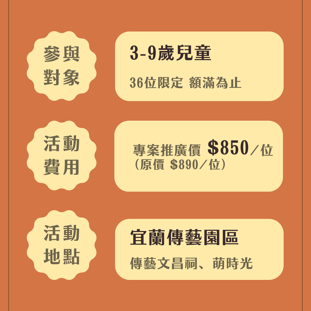 依小朋友報名序號於傳藝-萌時光(文昌街12號)報到