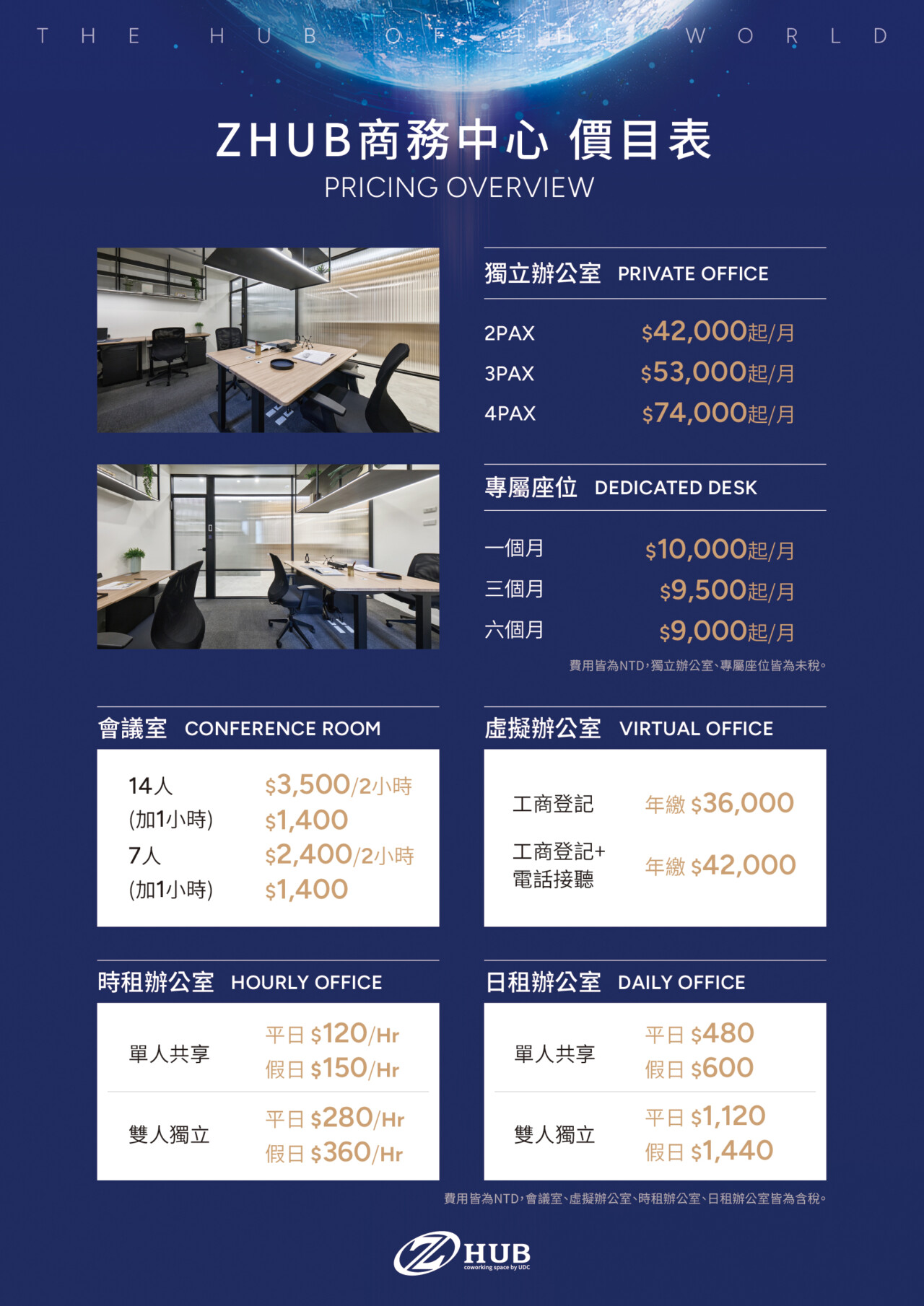 Z HUB提供服務方案 彈性辦公 志匯生活 共享空間租借 NT$ 120 /時 ✓最低$120即可使用 ✓彈性租期 ✓收費透明 前往購買 商務空間 NT$ 280 /時 ✓ 人數 2人 ✓ 位於大安核心地段 ✓ 專業秘書服務 前往購買 會議室租借 NT$ 2400 2小時 ✓ 高畫質螢幕 ✓ 高端視訊設備 ✓ 超高速無線網路 前往購買 虛擬辦公室 NT$ 3000 /月 ✓ 節省實體辦公成本 ✓ 專業秘書服務 ✓ 提升企業信任感 立即預約